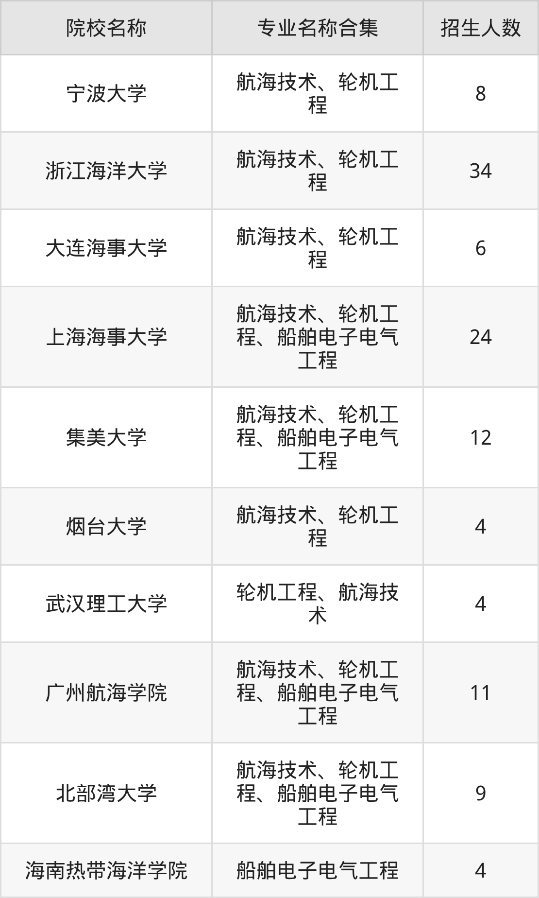 附浙江高考航海类院校2025年招生专业、招生计划人数:
