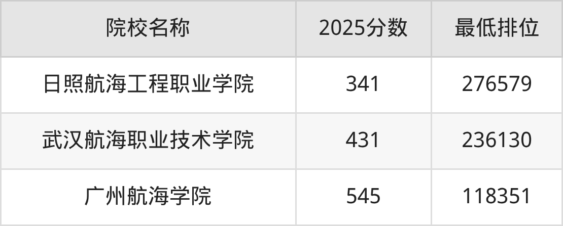 附航海类院校2025年在浙江高考的录取分数线一览表: