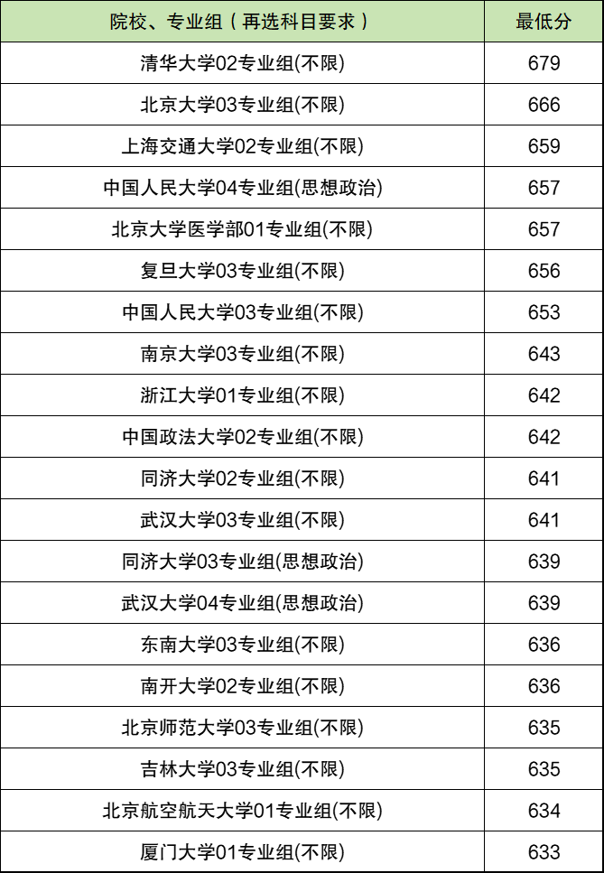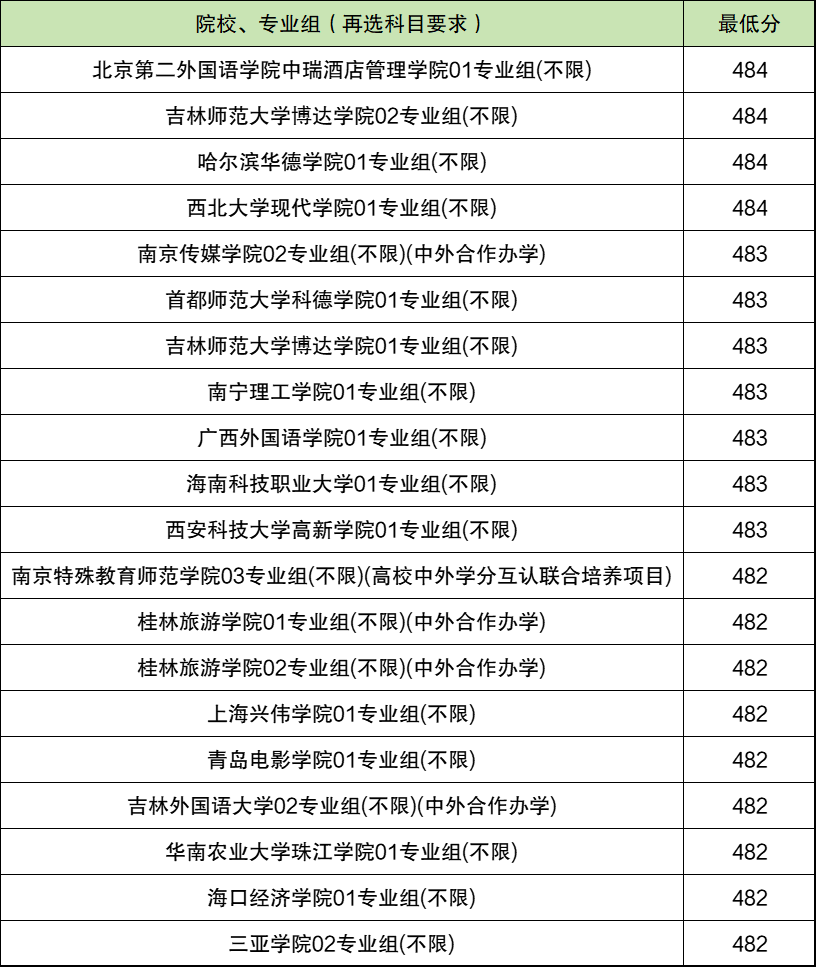 其实最低分的院校专业组并不止20个,但受到篇幅限制,本文只整理出20个院校专业组名单,供参考。