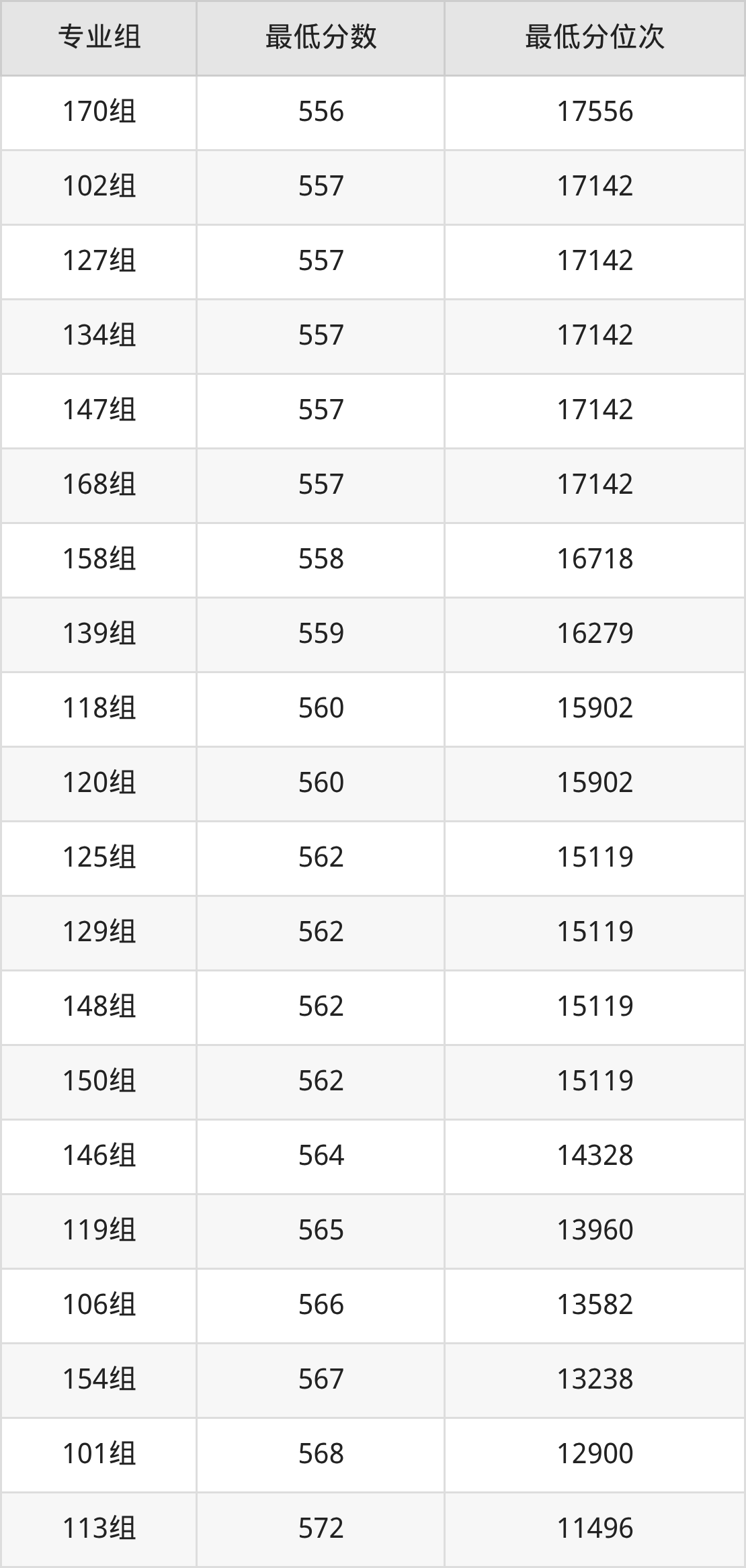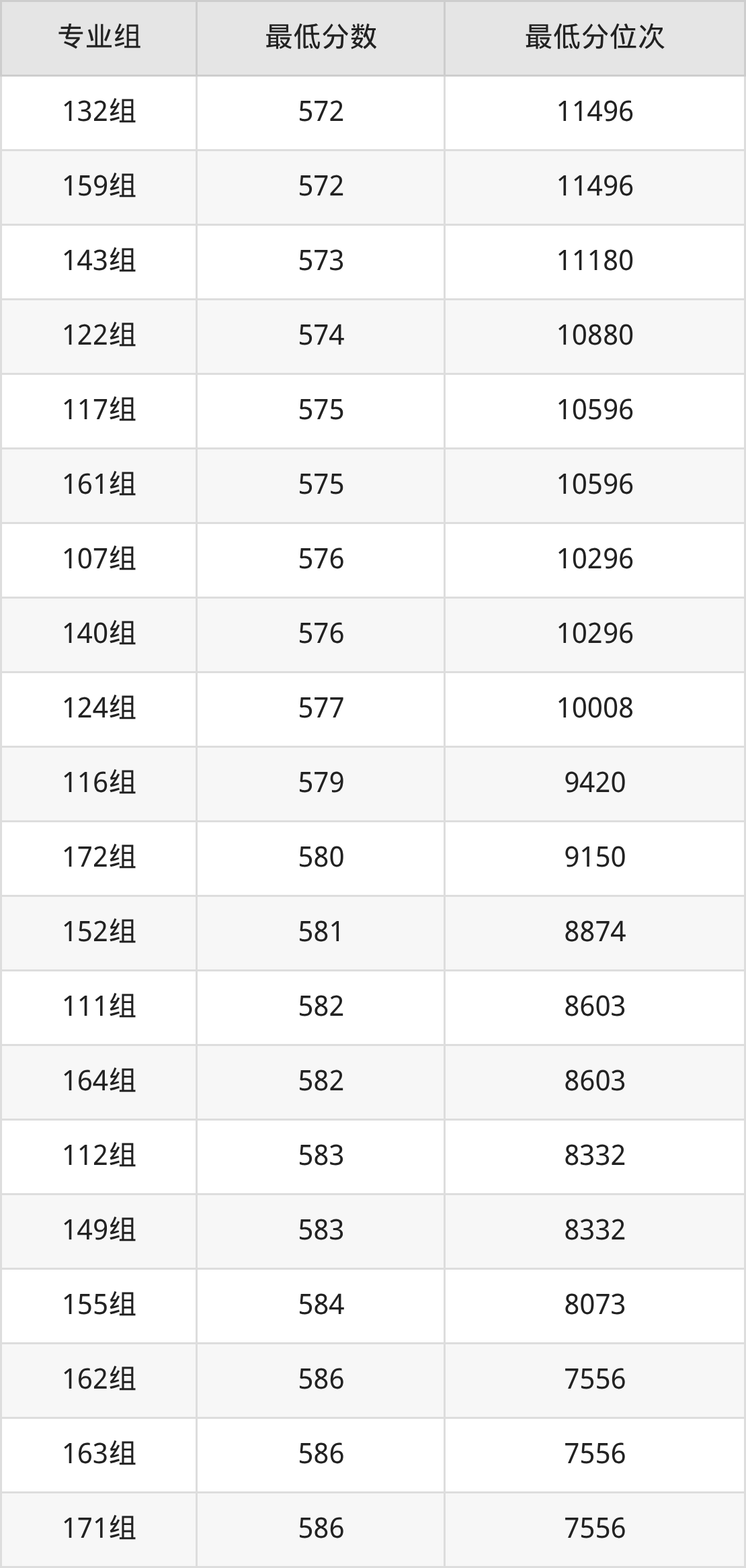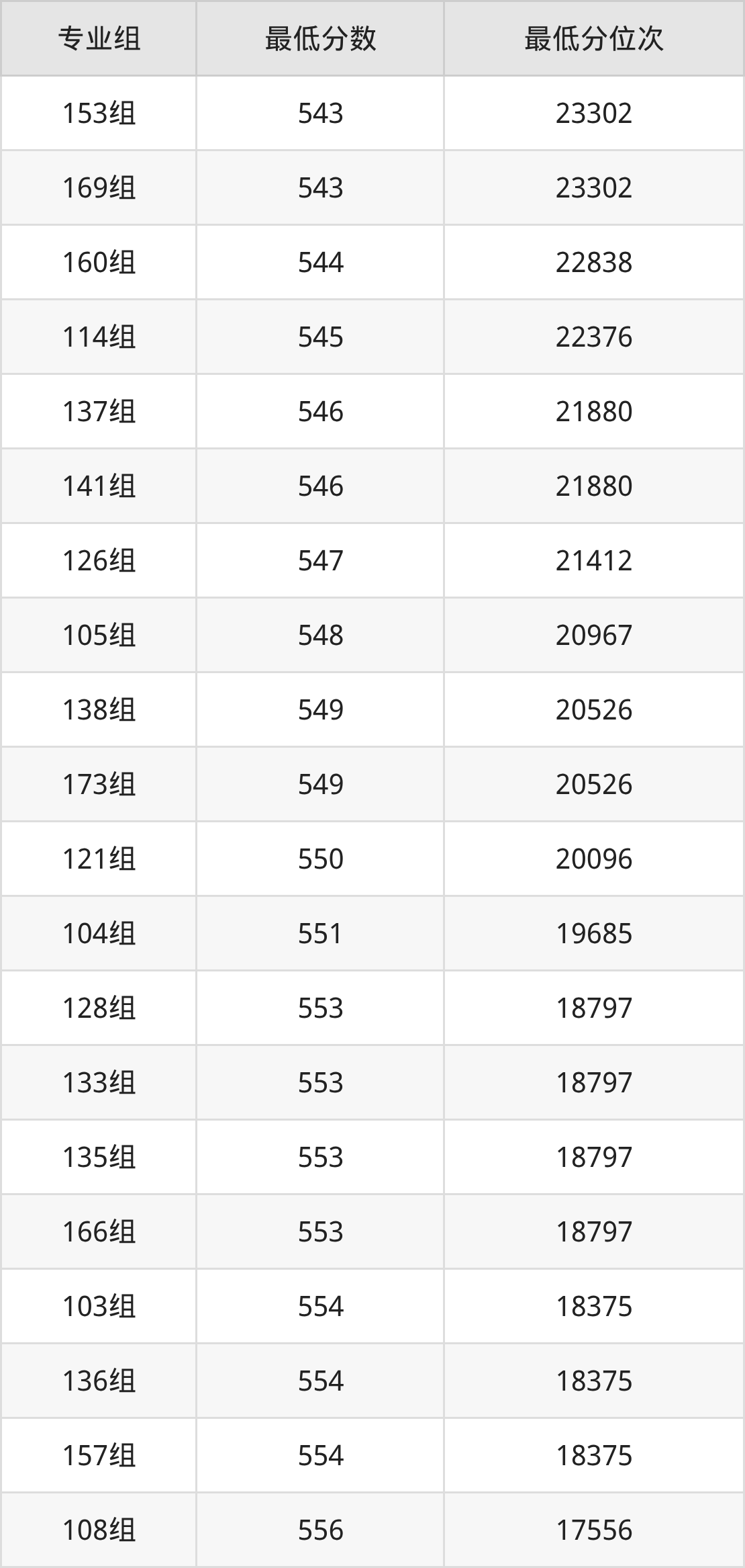 (1)成都师范学院:113组录取分是495、位次是134050,168组录取分是503、位次是123200,169组录取分是504、位次是121845,103组录取分是514、位次是108557,142组录取分是517、位次是104651