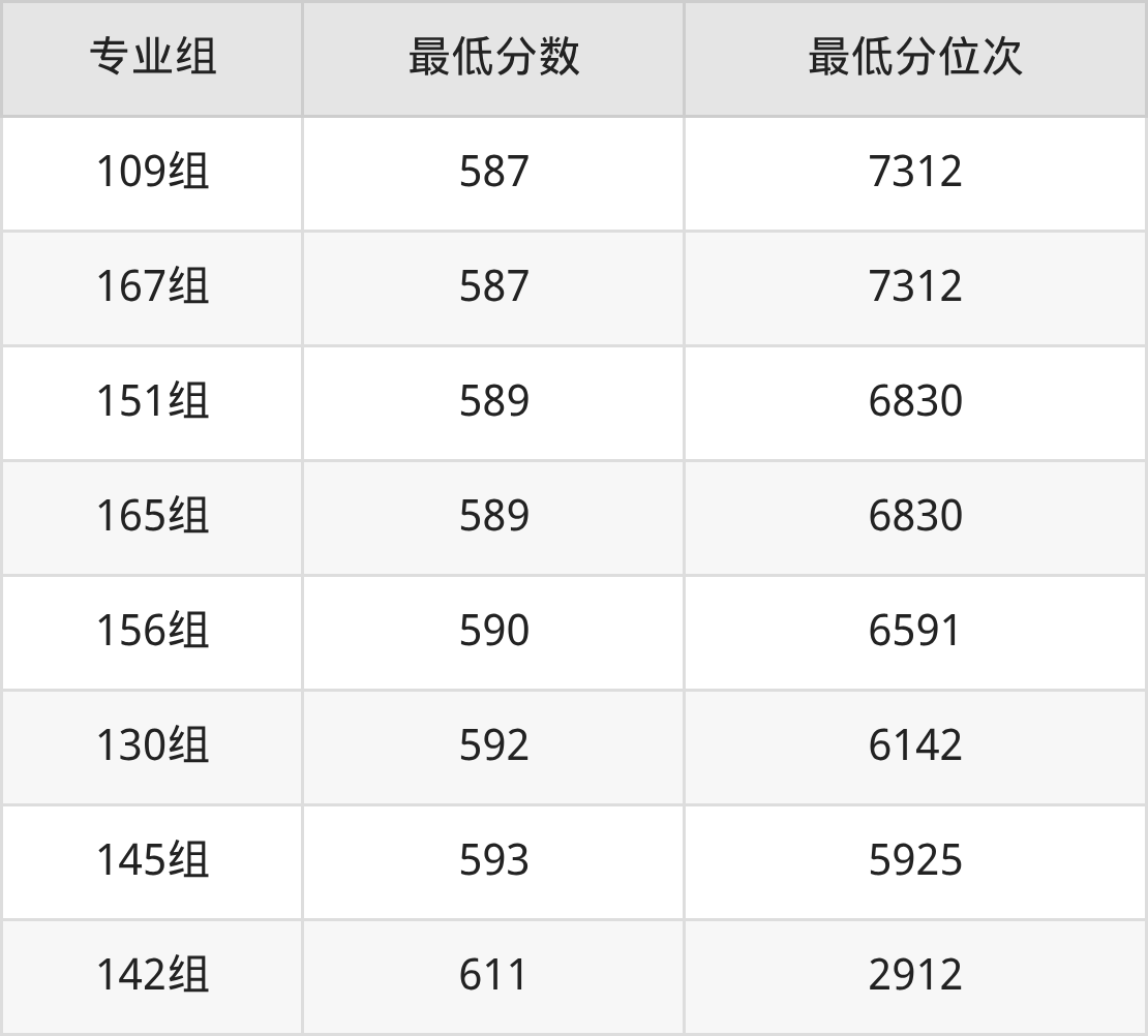 投档线最高为611分(成都师范学院142组),最低为492分(成都师范学院110组),分数跨度达119分,对应排位区间为2912至53274名。