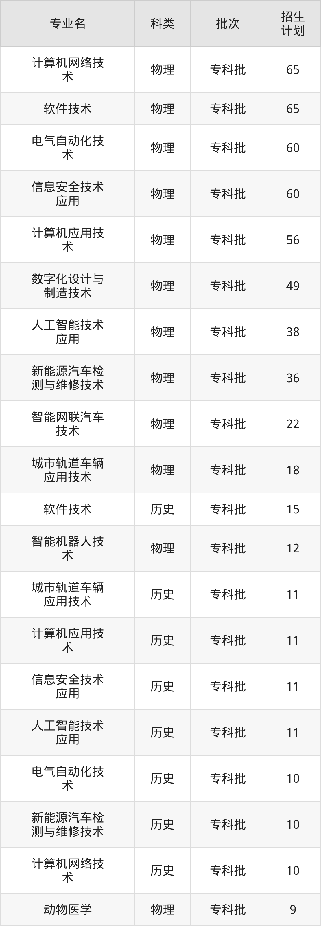 下面是长春数字科技职业学院2025吉林省招生计划表: