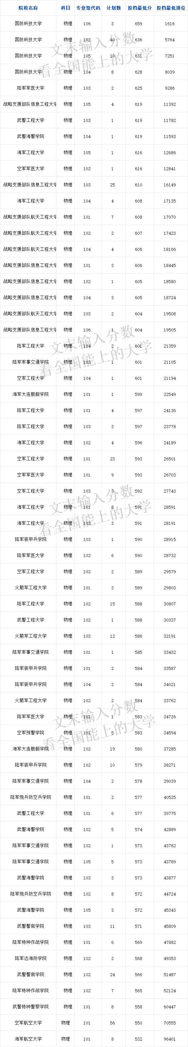 陆军边海防学院:招收人数2人,投档最低分568分。