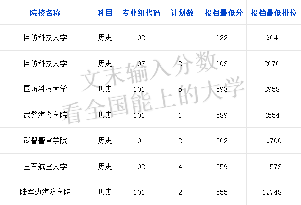 2024年在广东招收历史类考生的军校有5所,所有军校最低分数线区间为555分-622分,也就是在广东历史类最低555分就能上军校。