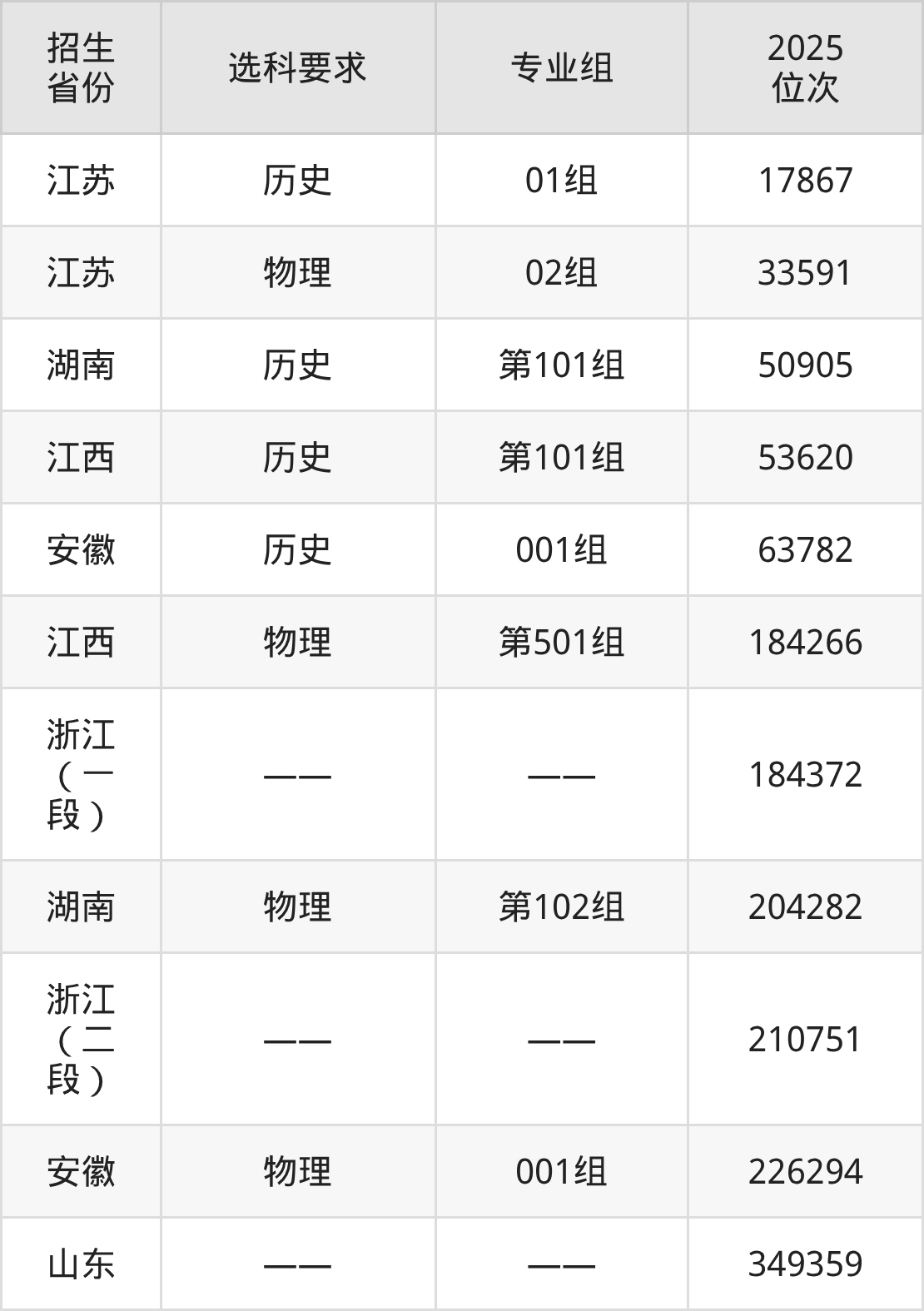 上海浦东职业技术学院2025年在全国各省的位次差异较大,最高位次是17867位(江苏历史类)、最低位次是349359位(山东)。各省具体位次请看下图: