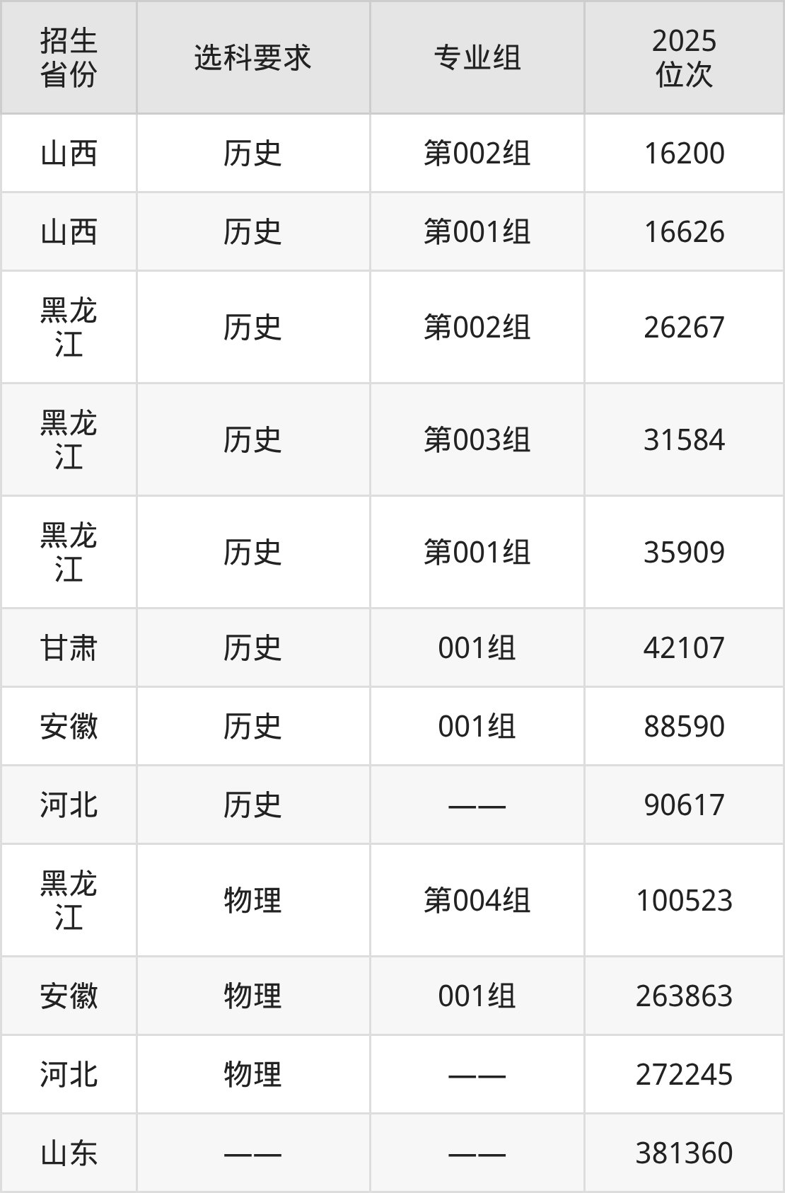 安徽广播影视职业技术学院2025年在全国各省的位次差异较大,最高位次是16200位(山西历史类)、最低位次是381360位(山东)。各省具体位次请看下图: