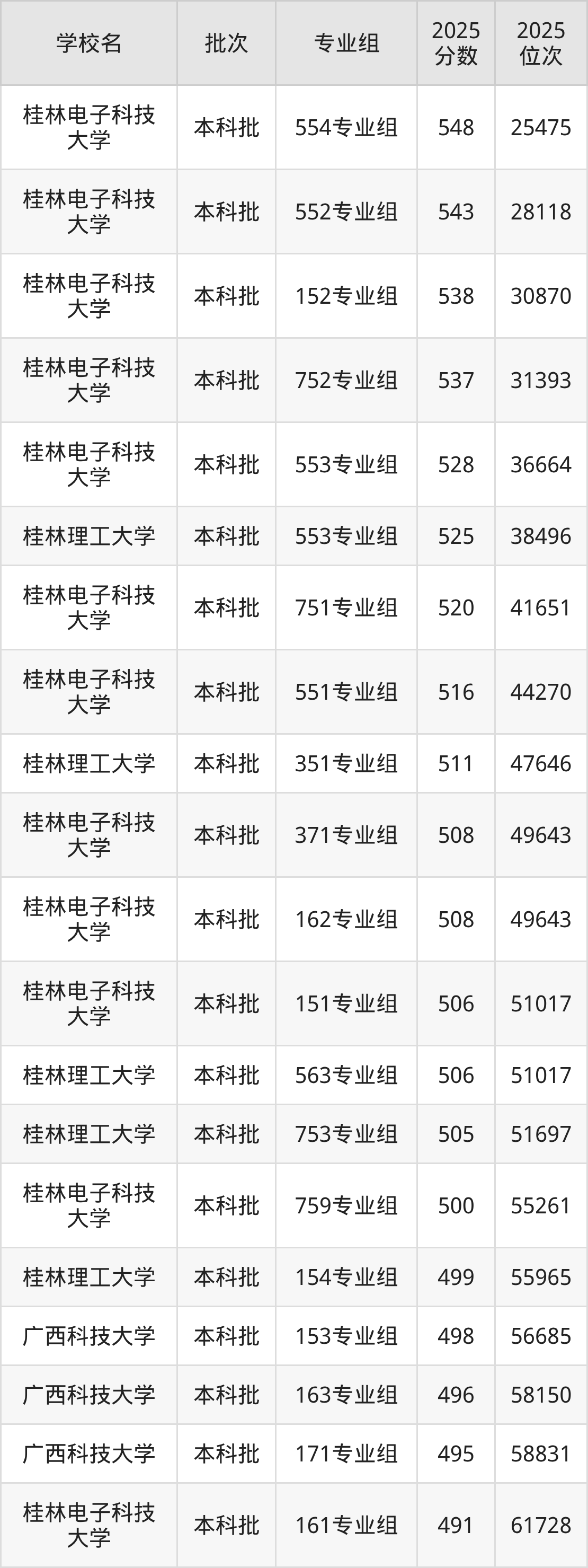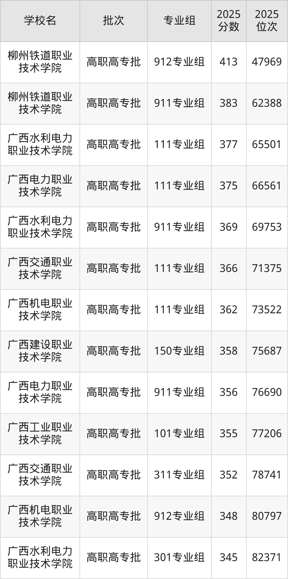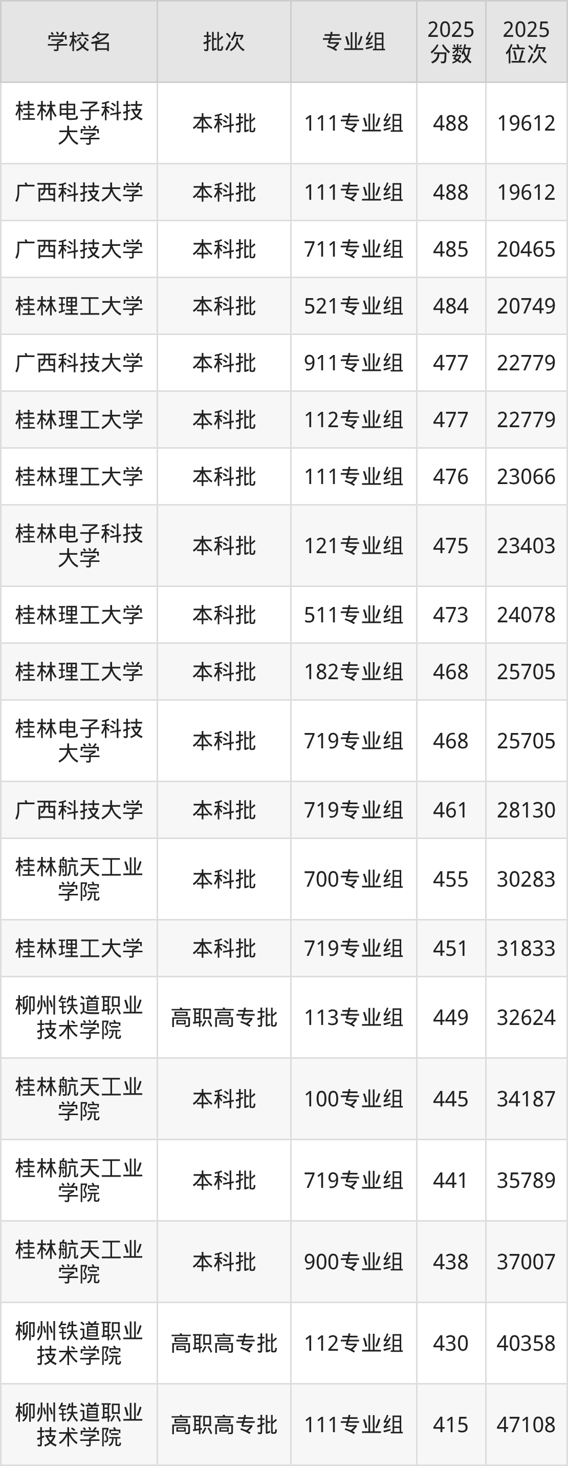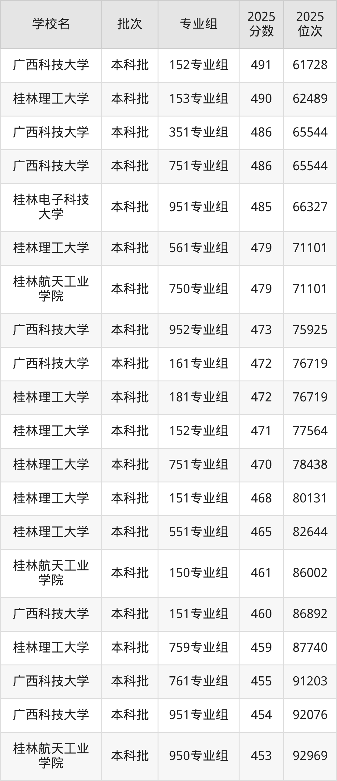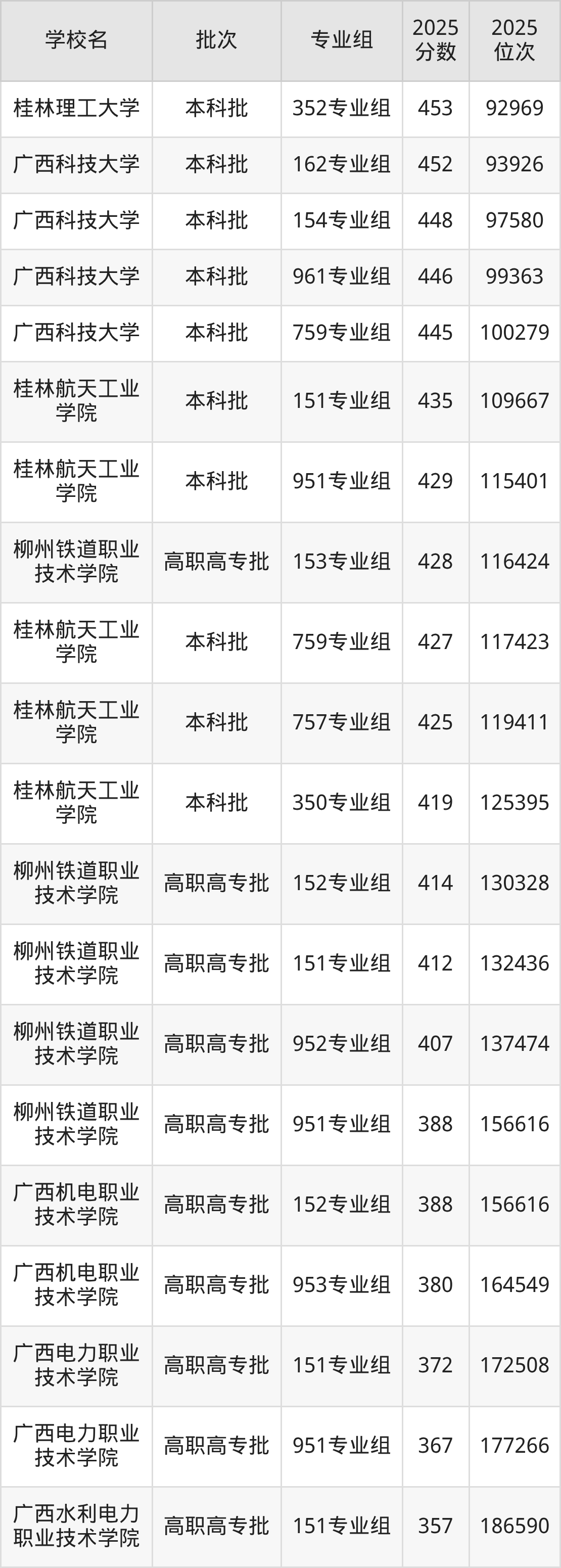 以下为2025年广西壮族自治区内历史类所有公办理工类大学分数线(Top100):
