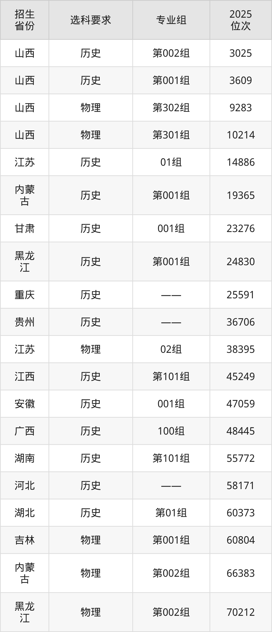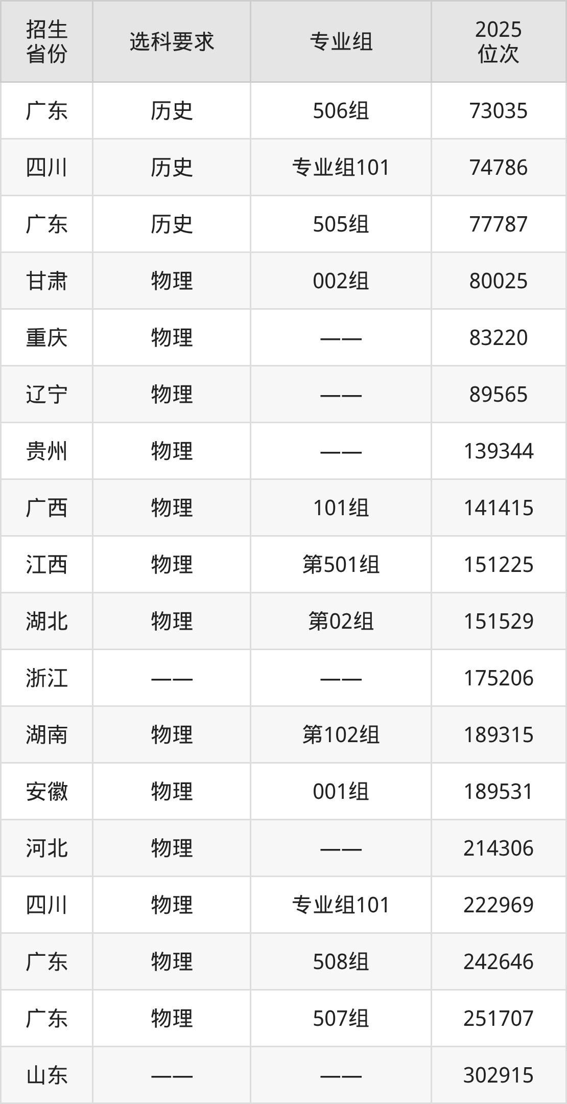 湖南高速铁路职业技术学院2025年在全国各省的位次差异较大,最高位次是3025位(山西历史类)、最低位次是302915位(山东)。各省具体位次请看下图: