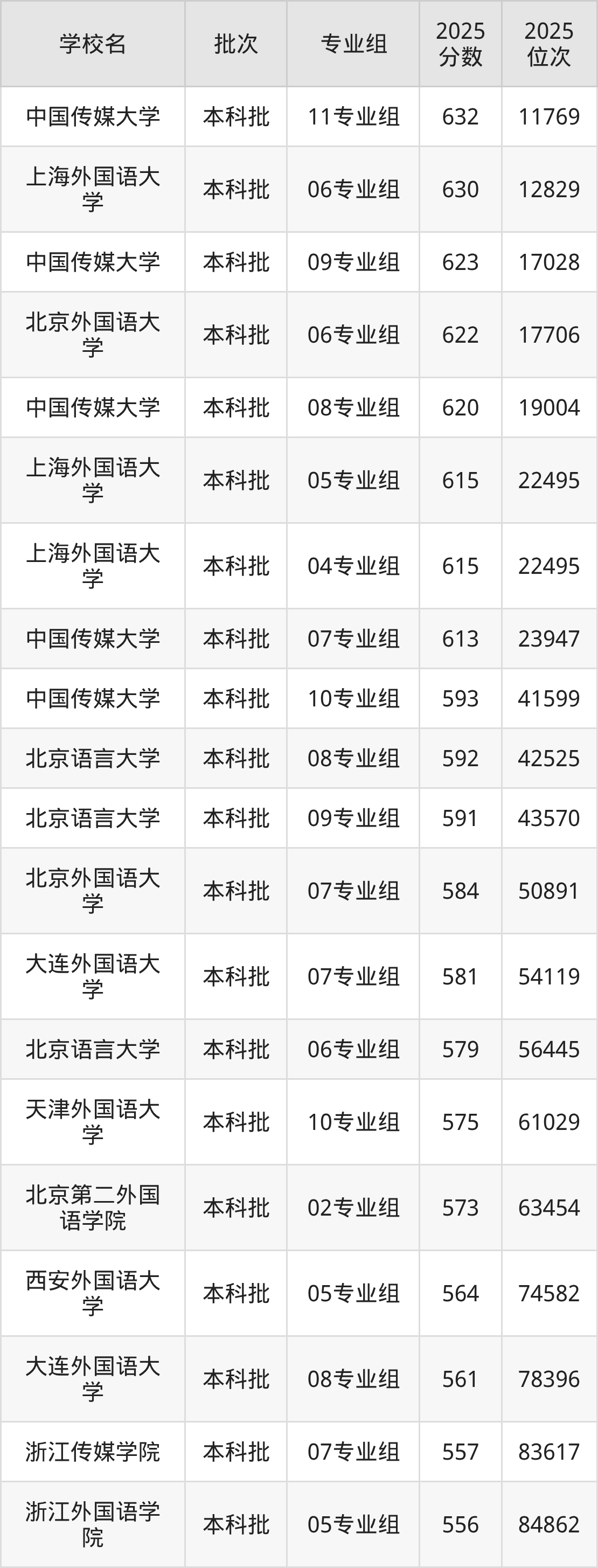 1、中国传媒大学(11专业组632分)