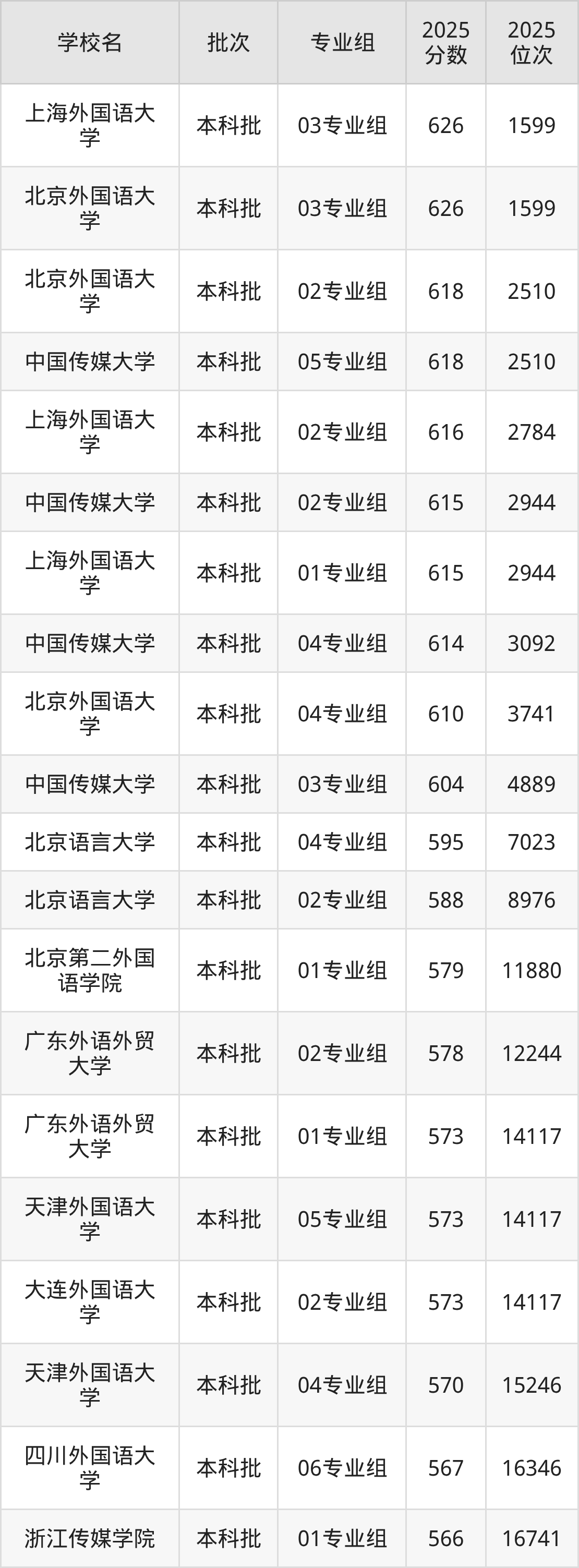二、全国公办语言类大学在江苏录取分数线排名(历史类)