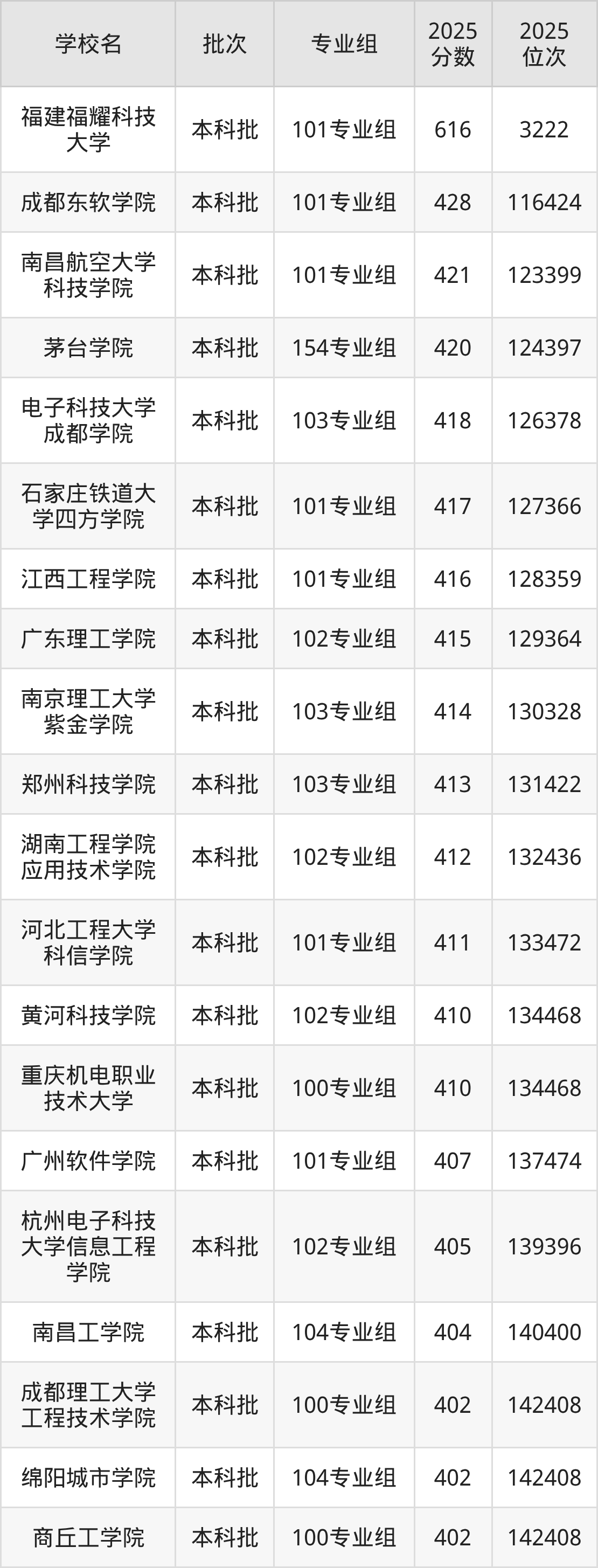 2、柳州工学院(102专业组402分)