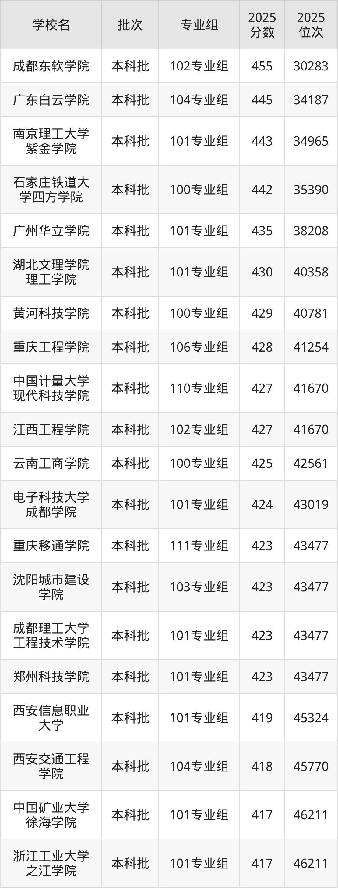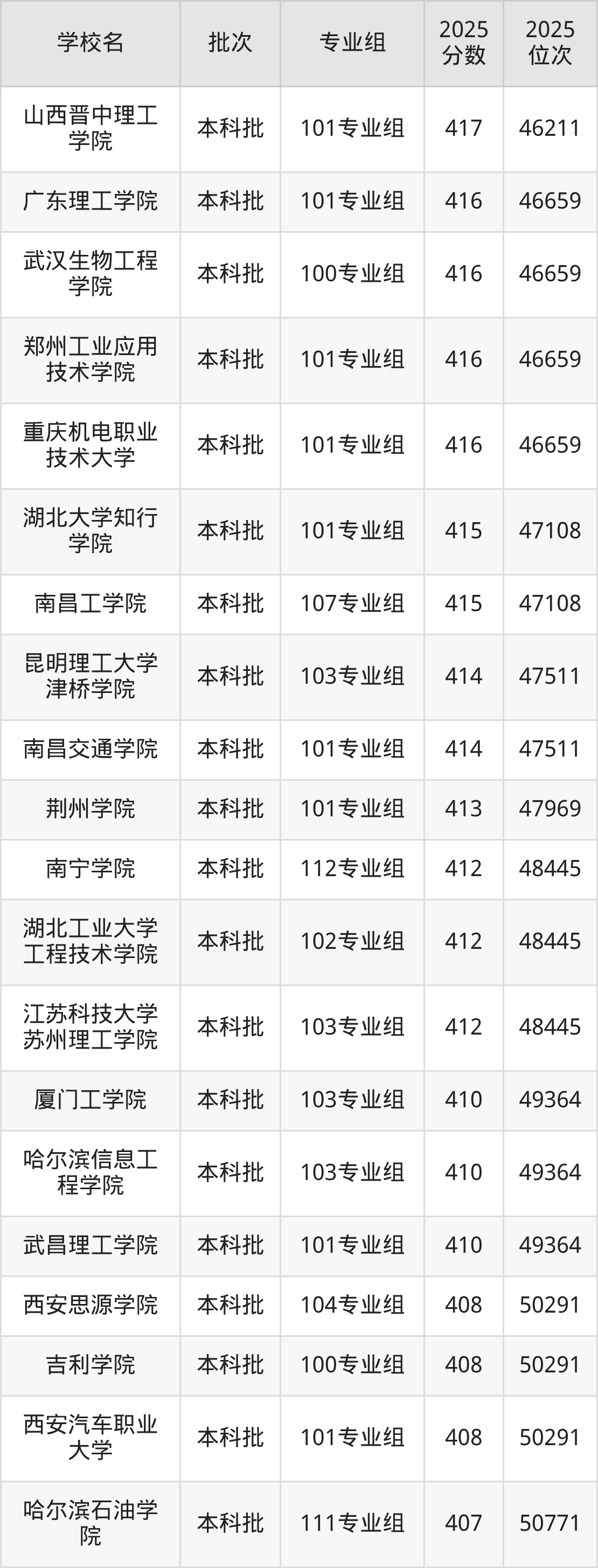 一、2025广西民办理工类大学分数线排名(物理类)