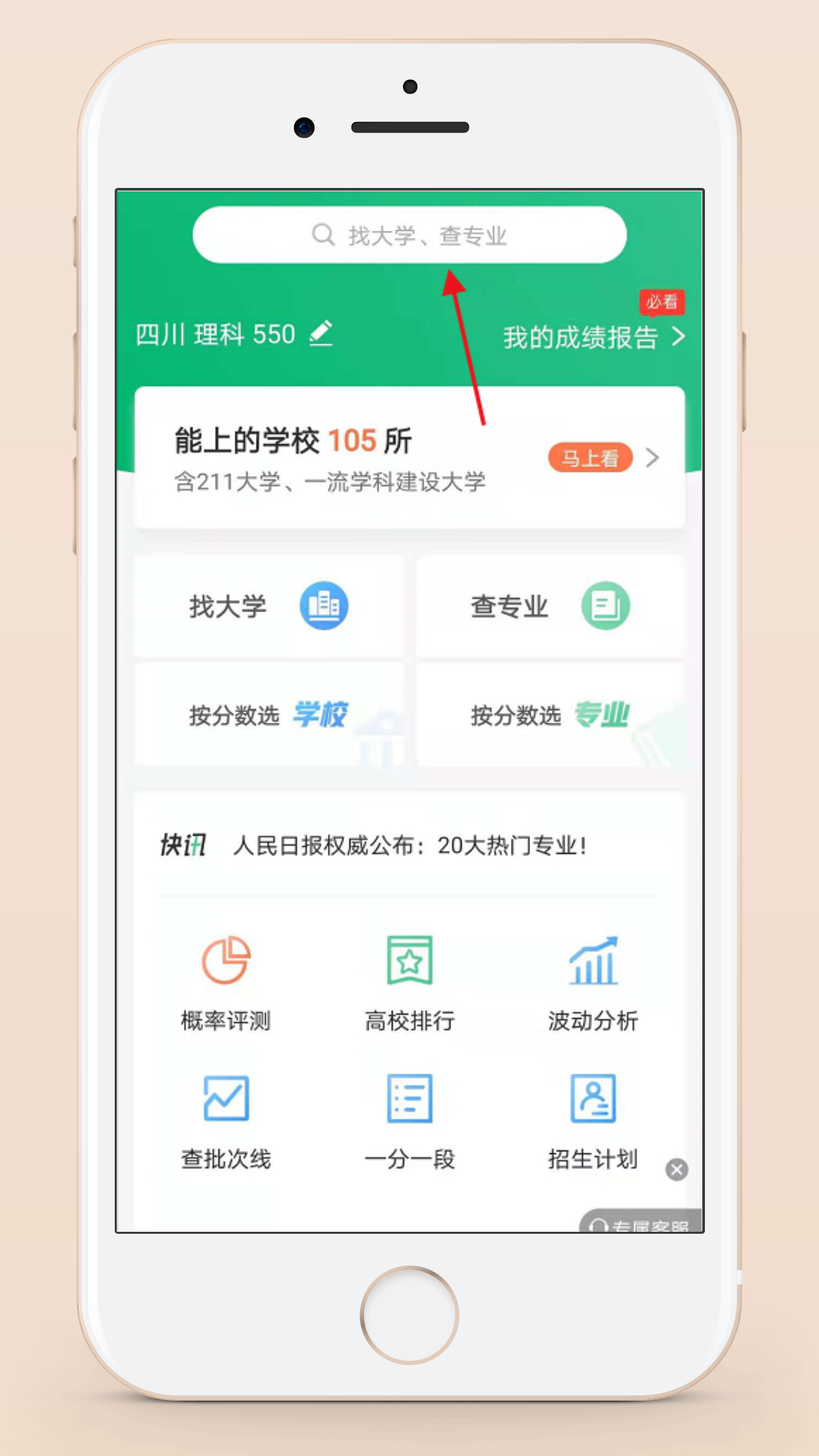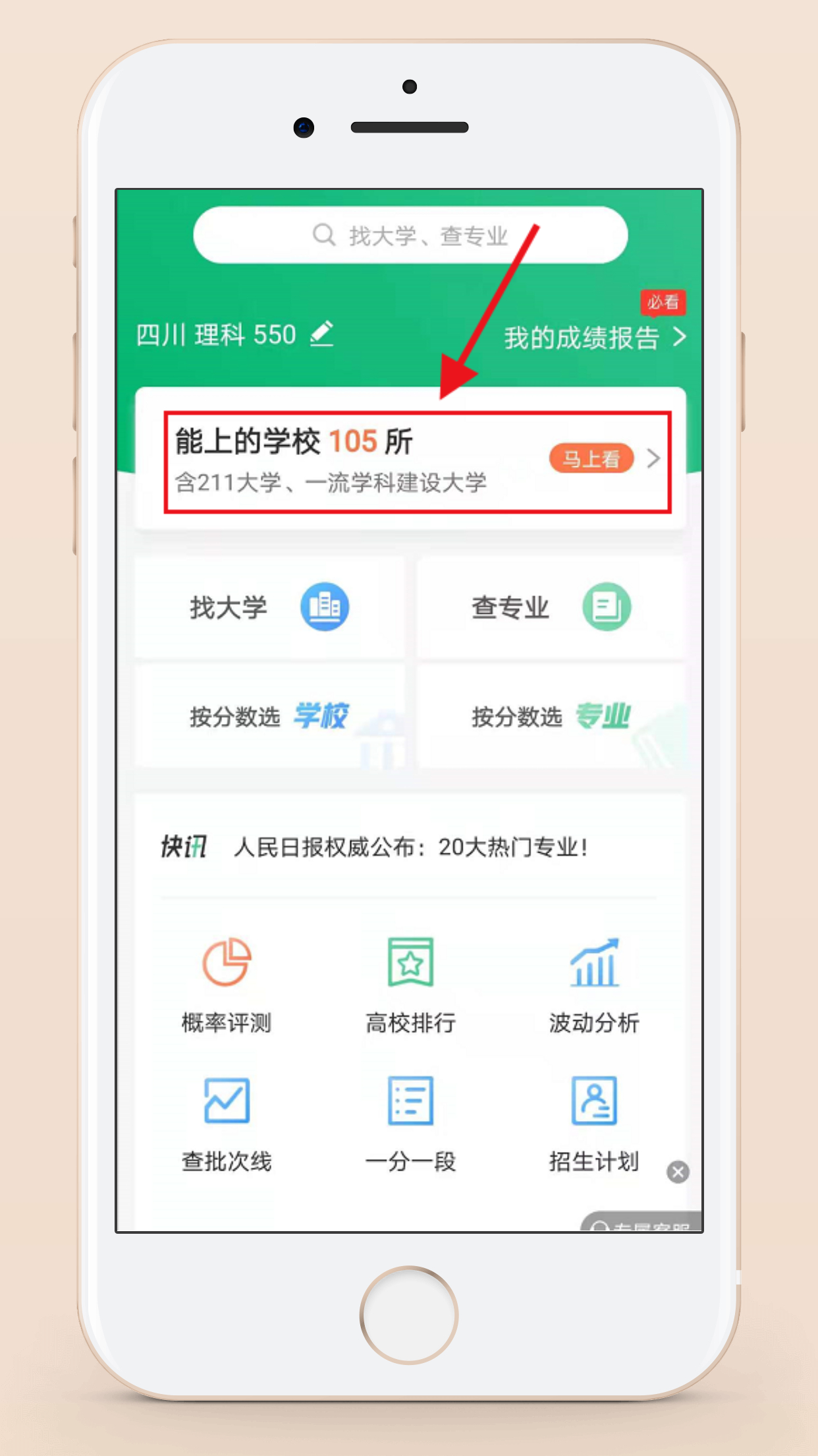 第二步:点击首页“能上的学校”。