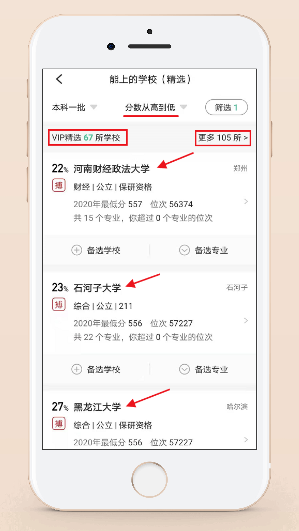 第三步:即可查看自己分数附近的所有院校了!