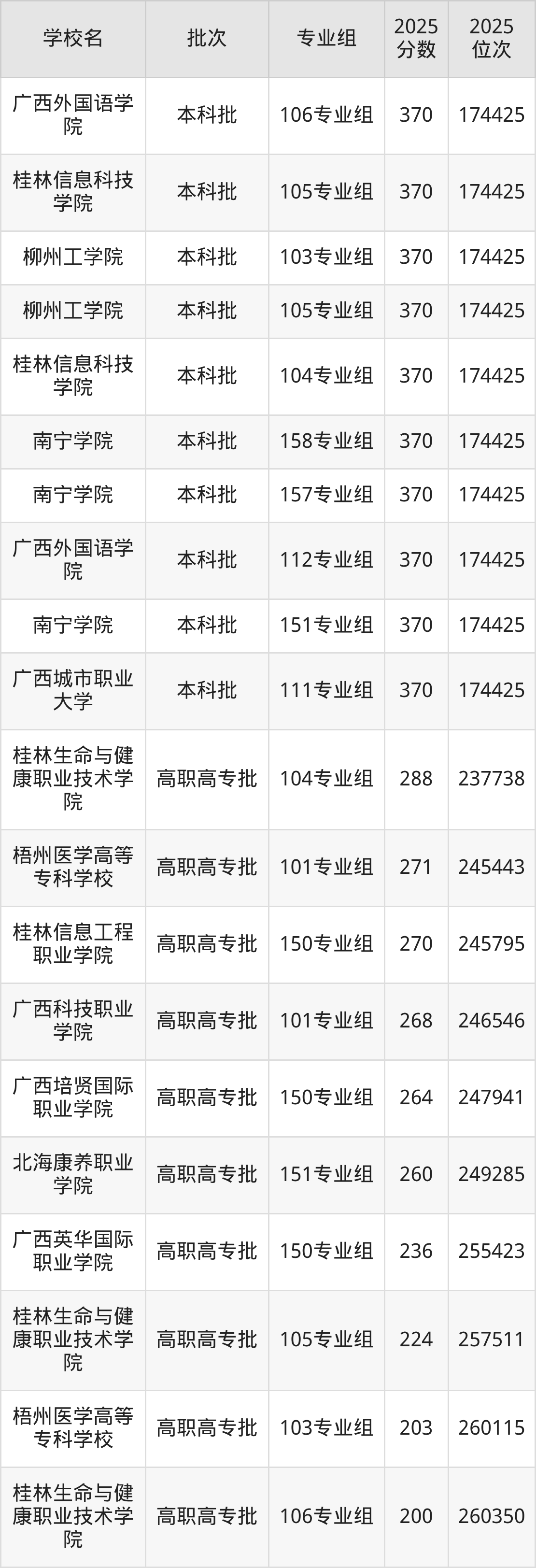 以下为2025年广西壮族自治区内历史类所有民办大学分数线: