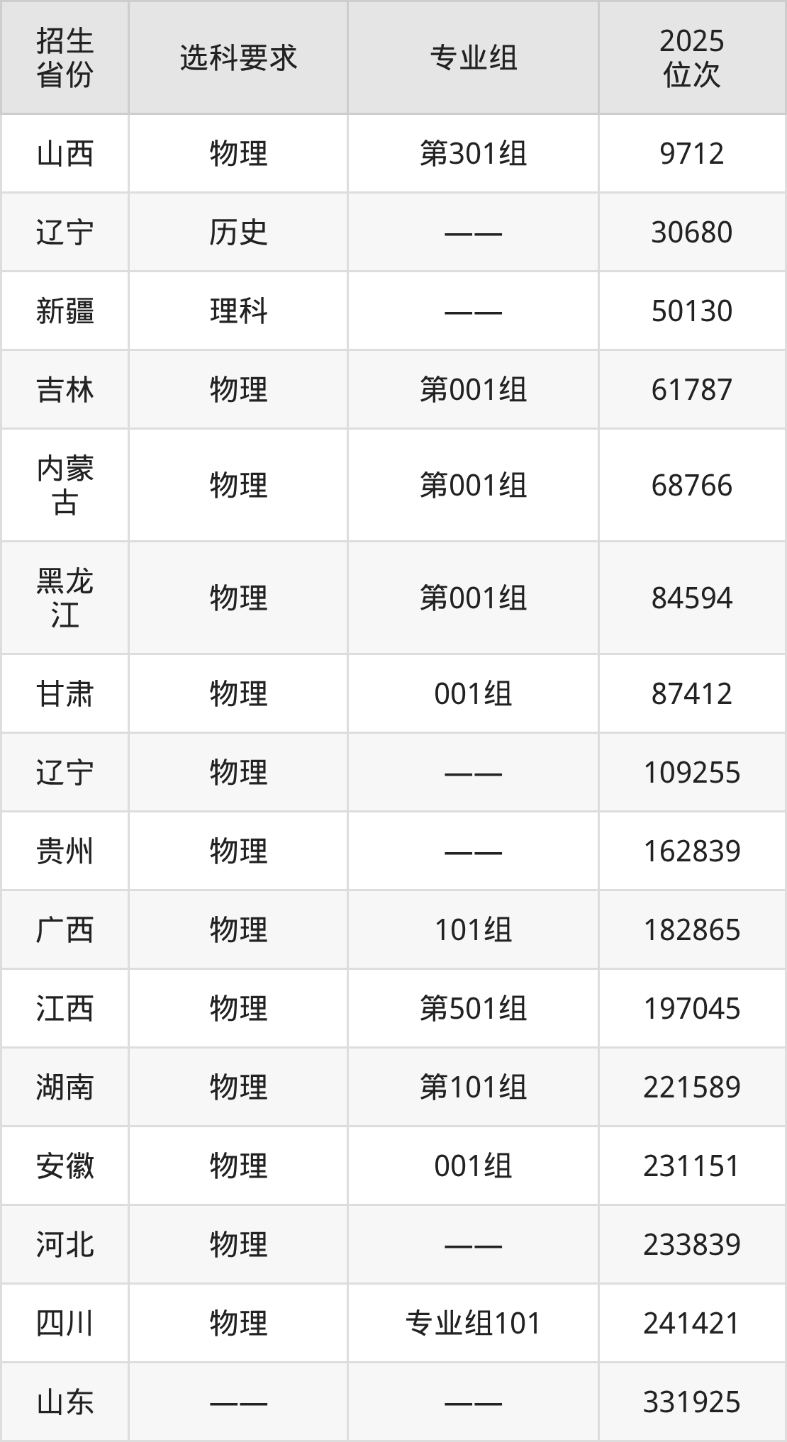 辽宁轨道交通职业学院2025年在全国各省的位次差异较大,最高位次是9712位(山西物理类)、最低位次是331925位(山东)。各省具体位次请看下图: