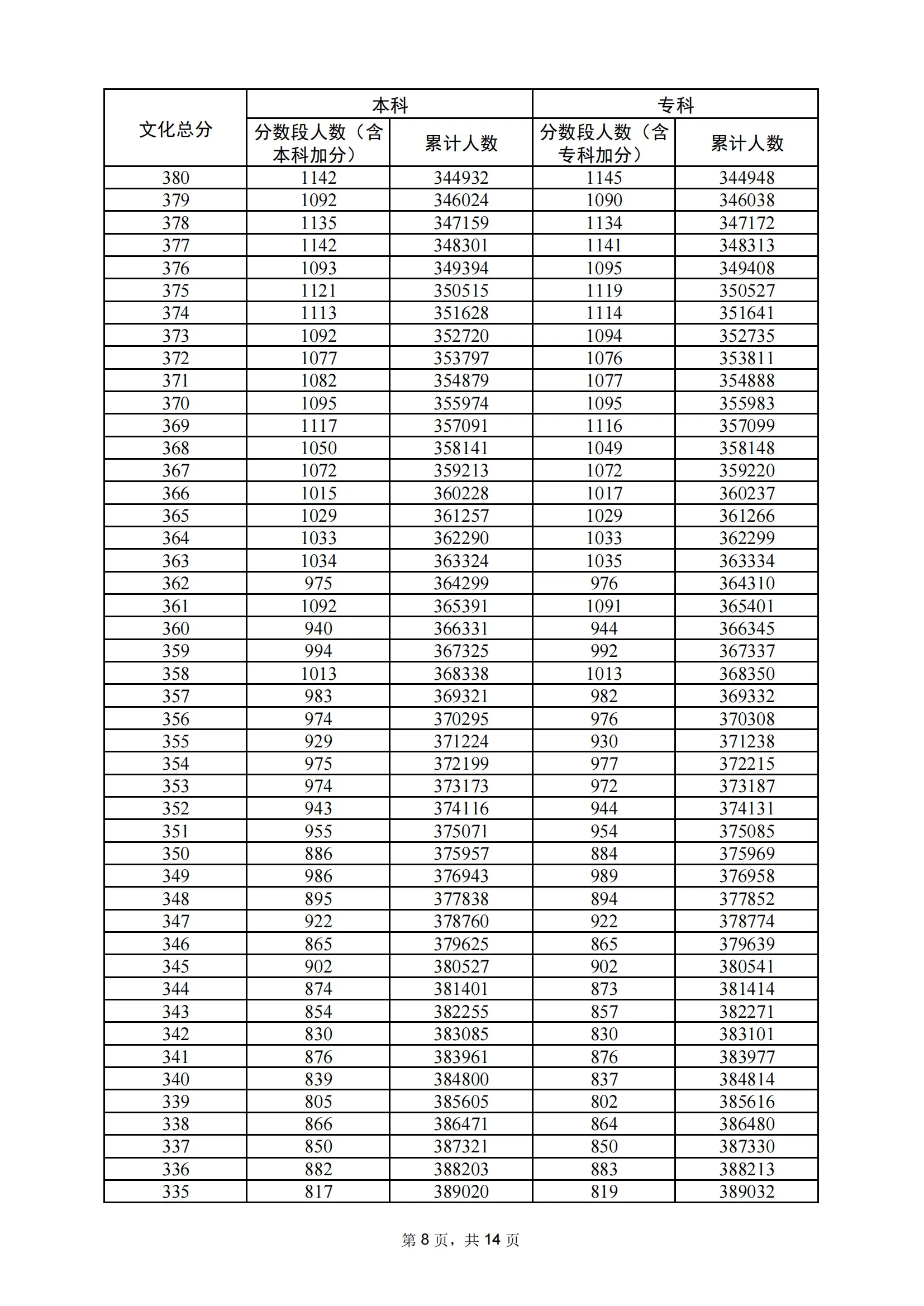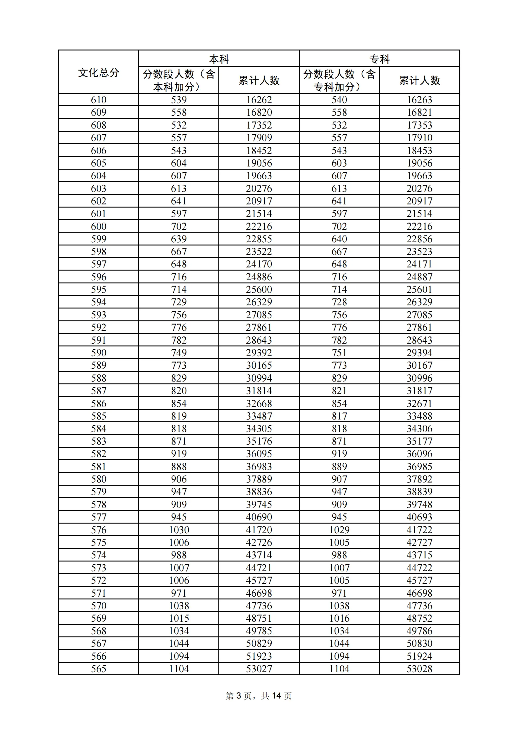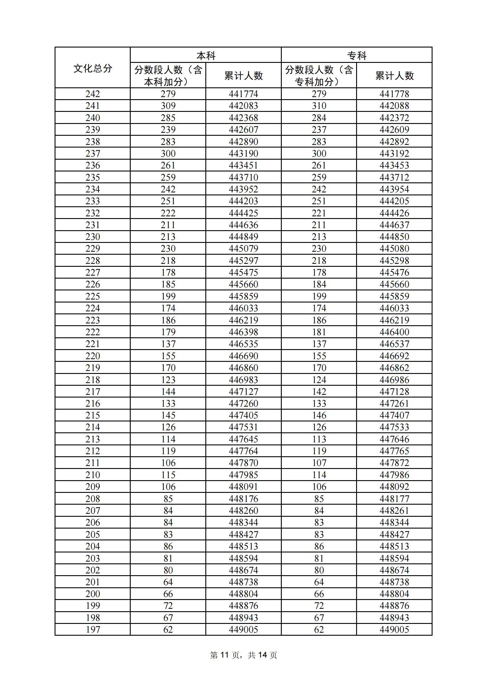 | 年份 | 分数 | 人数 | 累计人数 |