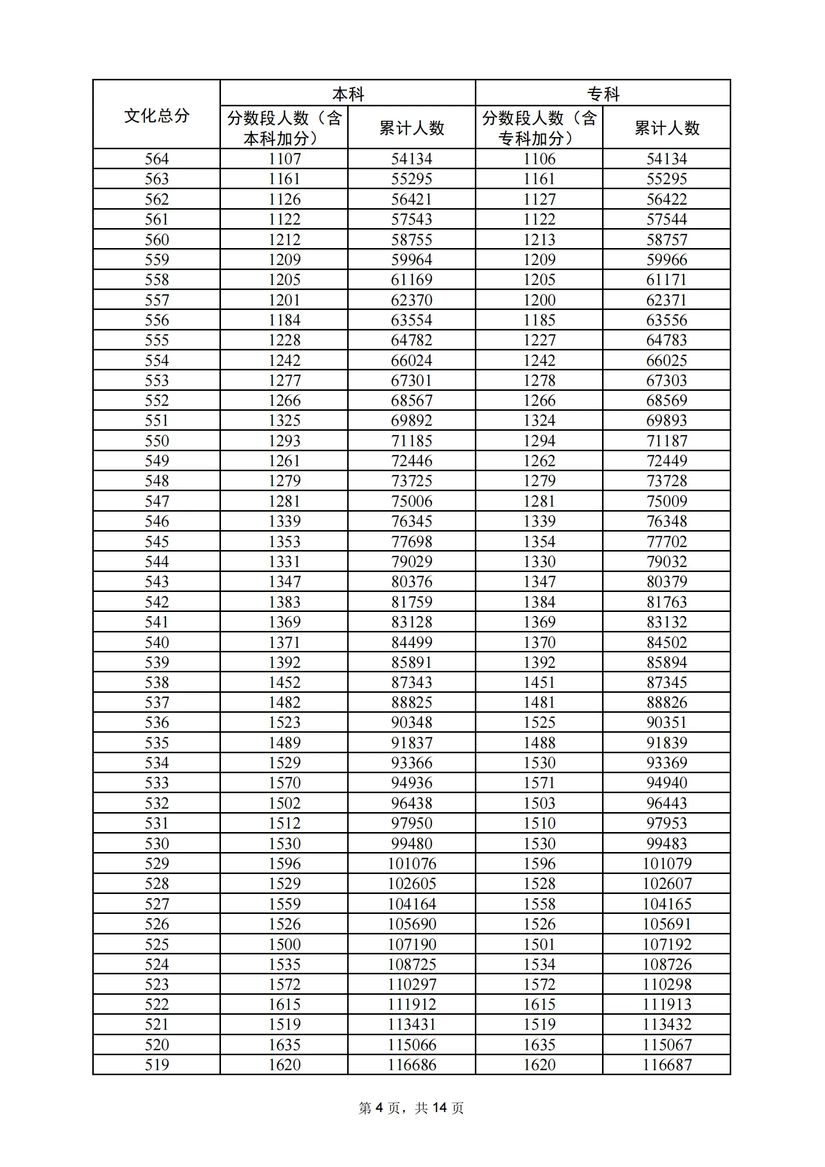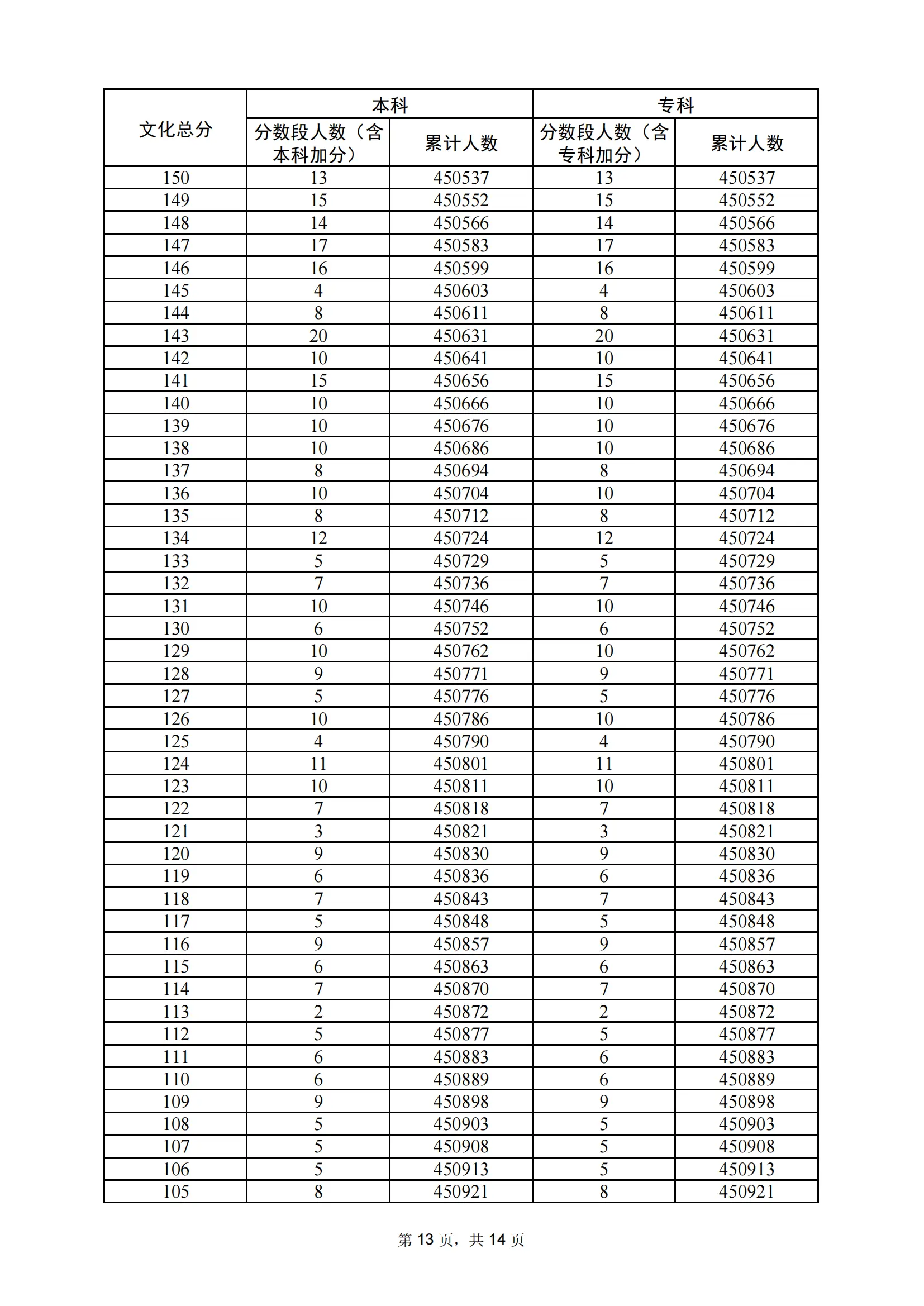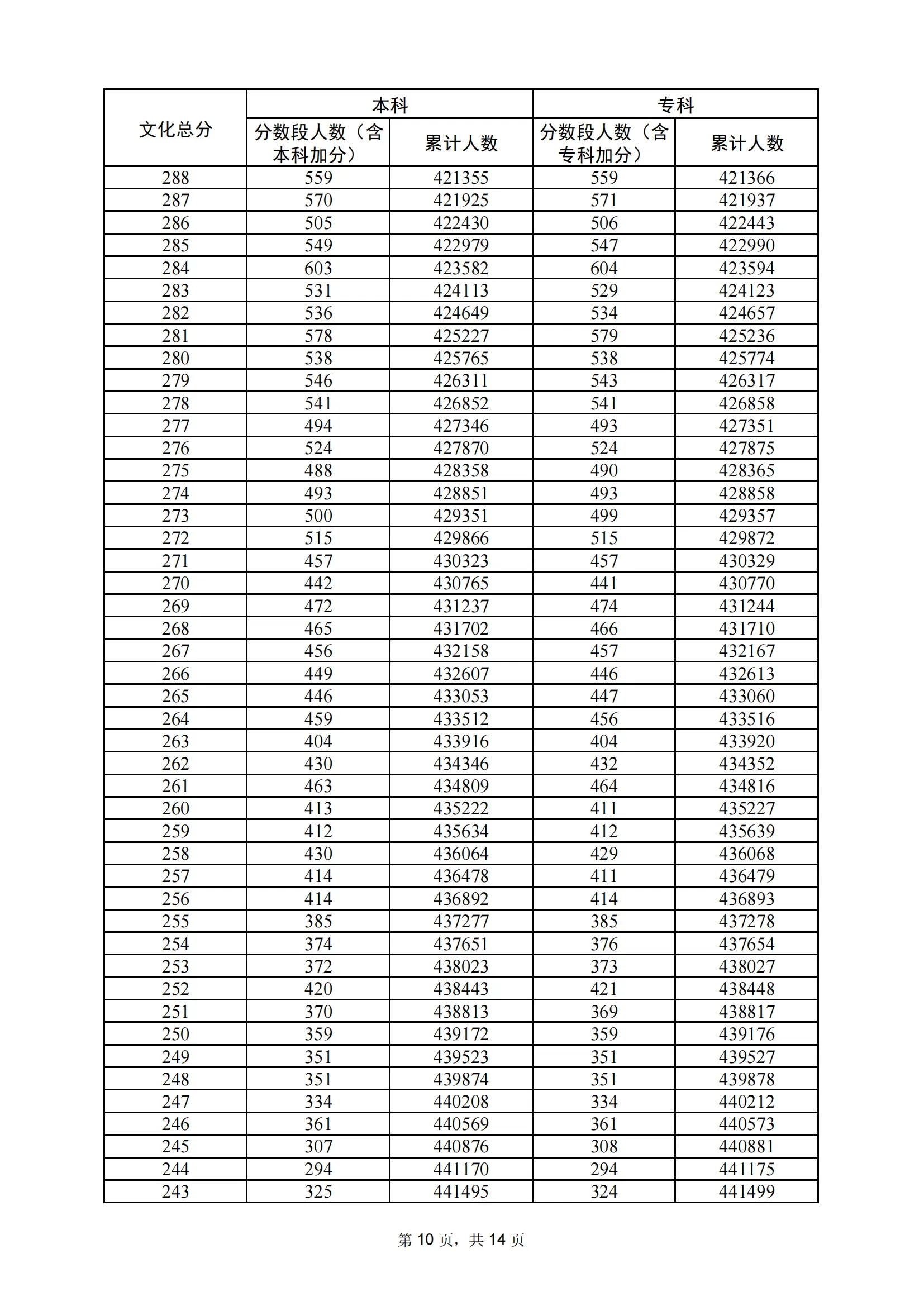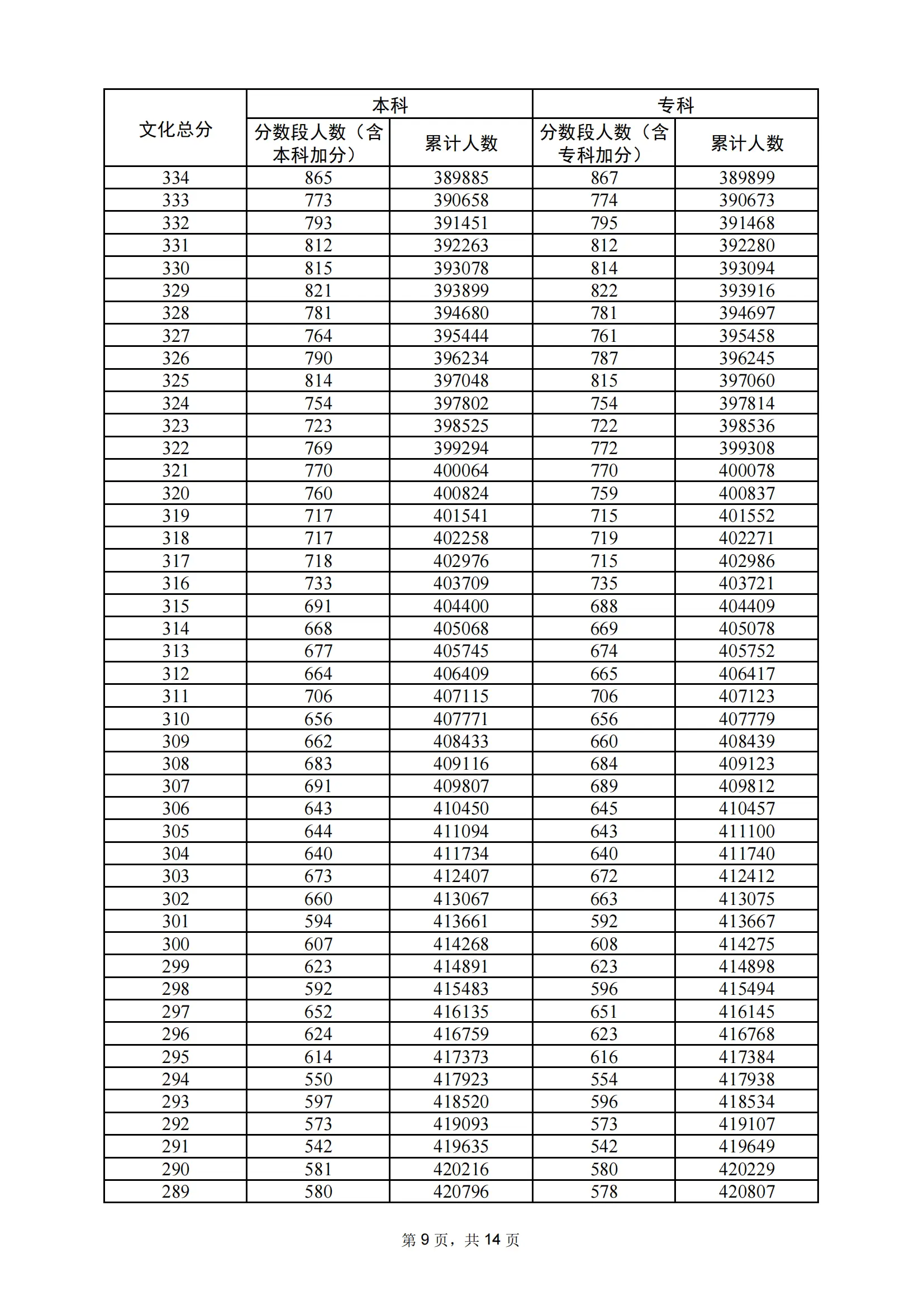 | 年份 | 分数 | 人数 | 累计人数 |