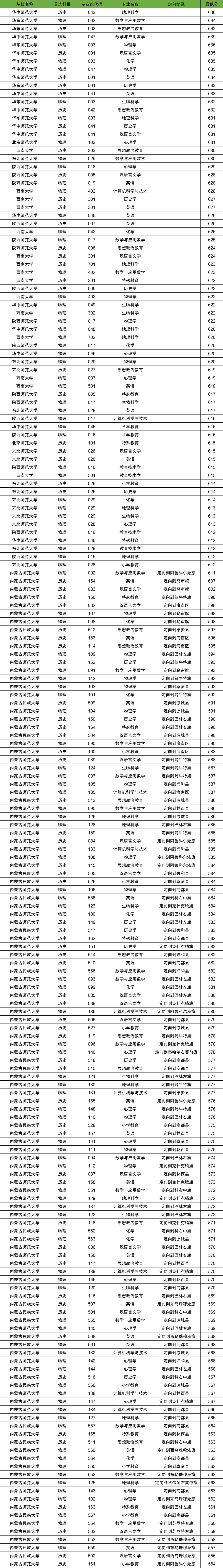 8、内蒙古师范大学:2025年公费师范生招生190人,历史类最低554分、物理类最低562分。
