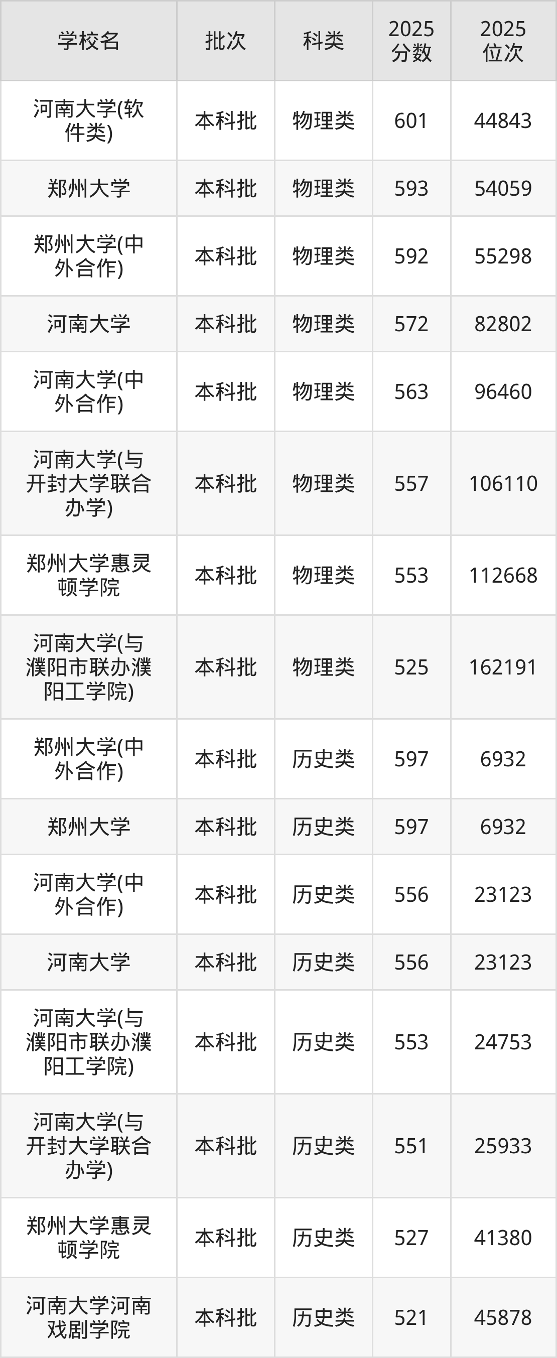 下面是2025年全国双一流大学在河南的最低录取分数线一览表: