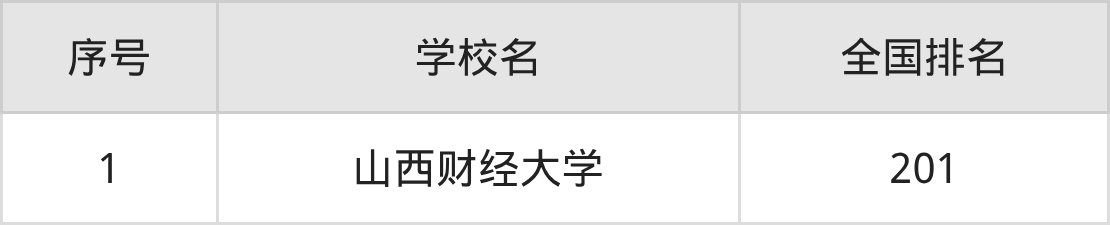 1、山西财经大学:2026年排全国第201名。