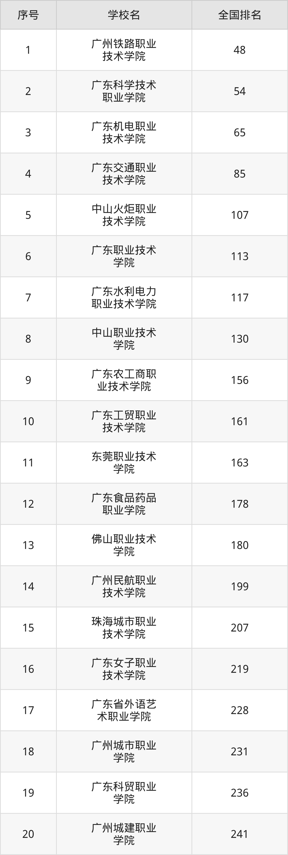1、广州铁路职业技术学院:2025年排全国第48名;