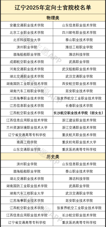 最新一年招生计划显示,定向士官在辽宁省招生院校中,物理类招生院校37所、历史类招生院校18所,不同院校招生人数、专业、类型等都有差异,为方便2026届考生报考,下面将详细列举这些学校的名单,供查阅: