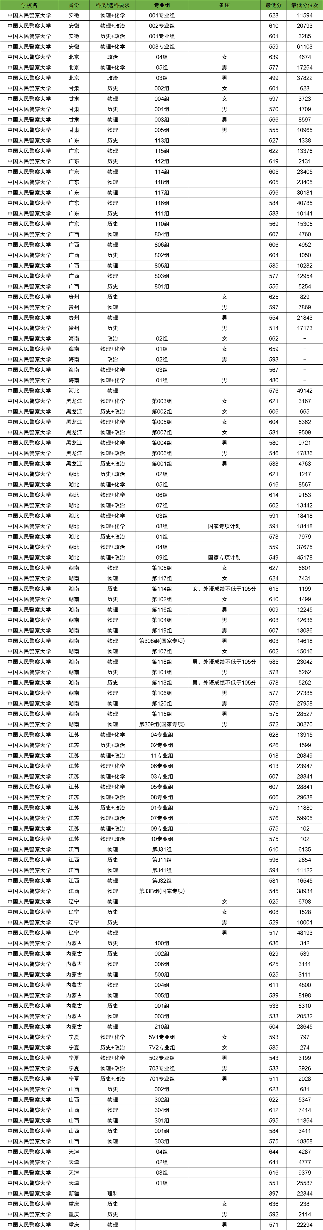 湖南首选历史的公安学最高分615分,最低分578分;广东首选物理的最高分622分,最低分584分;湖北首选物理的最高分616分、最低分549分