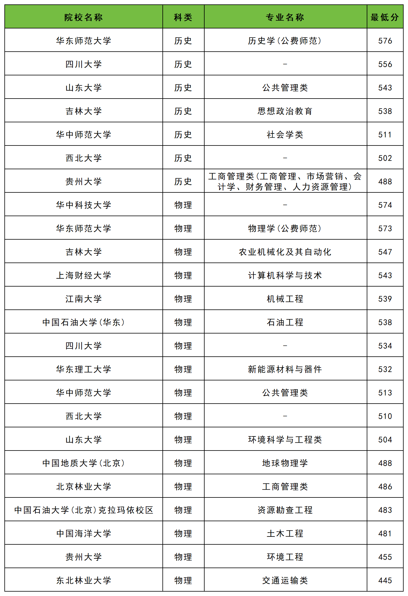 华东师范大学:历史类576分、物理类573分;