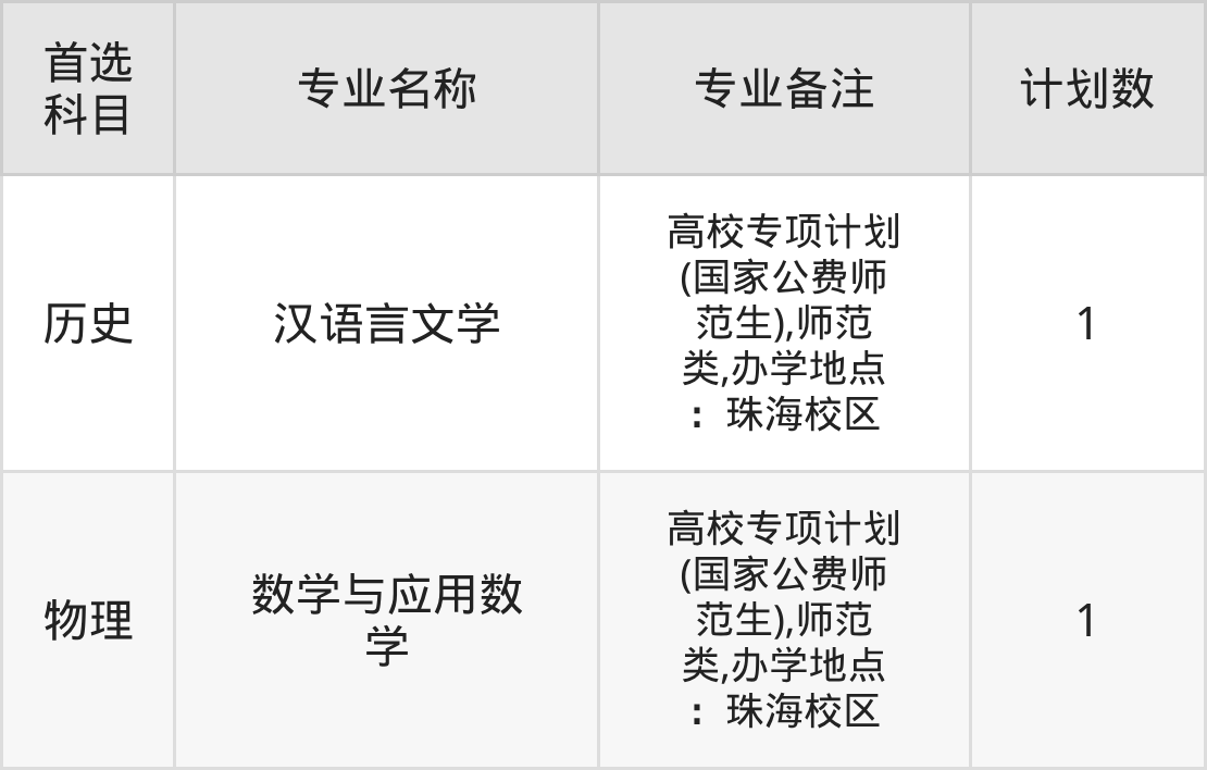 2025年北京师范大学(珠海校区)在贵州招生人数是2人,招生专业包括汉语言文学、数学与应用数学。具体如下图所示: