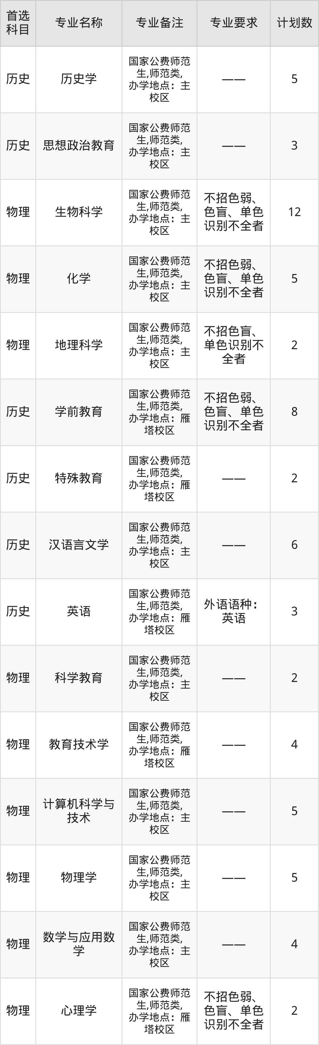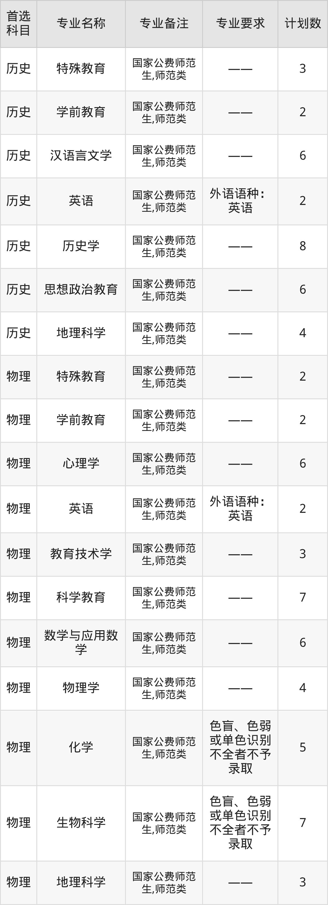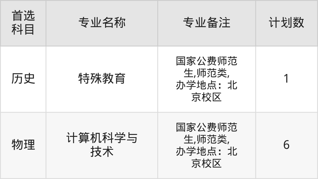 2025年北京师范大学在贵州招生人数是7人,招生专业包括特殊教育、计算机科学与技术。具体如下图所示: