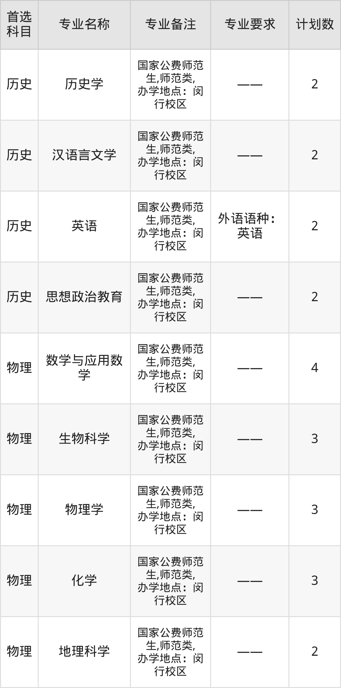 2025年华东师范大学在贵州招生人数是23人,招生专业包括历史学、汉语言文学、英语、思想政治教育、数学与应用数学、生物科学、物理学、化学、地理科学。具体如下图所示: