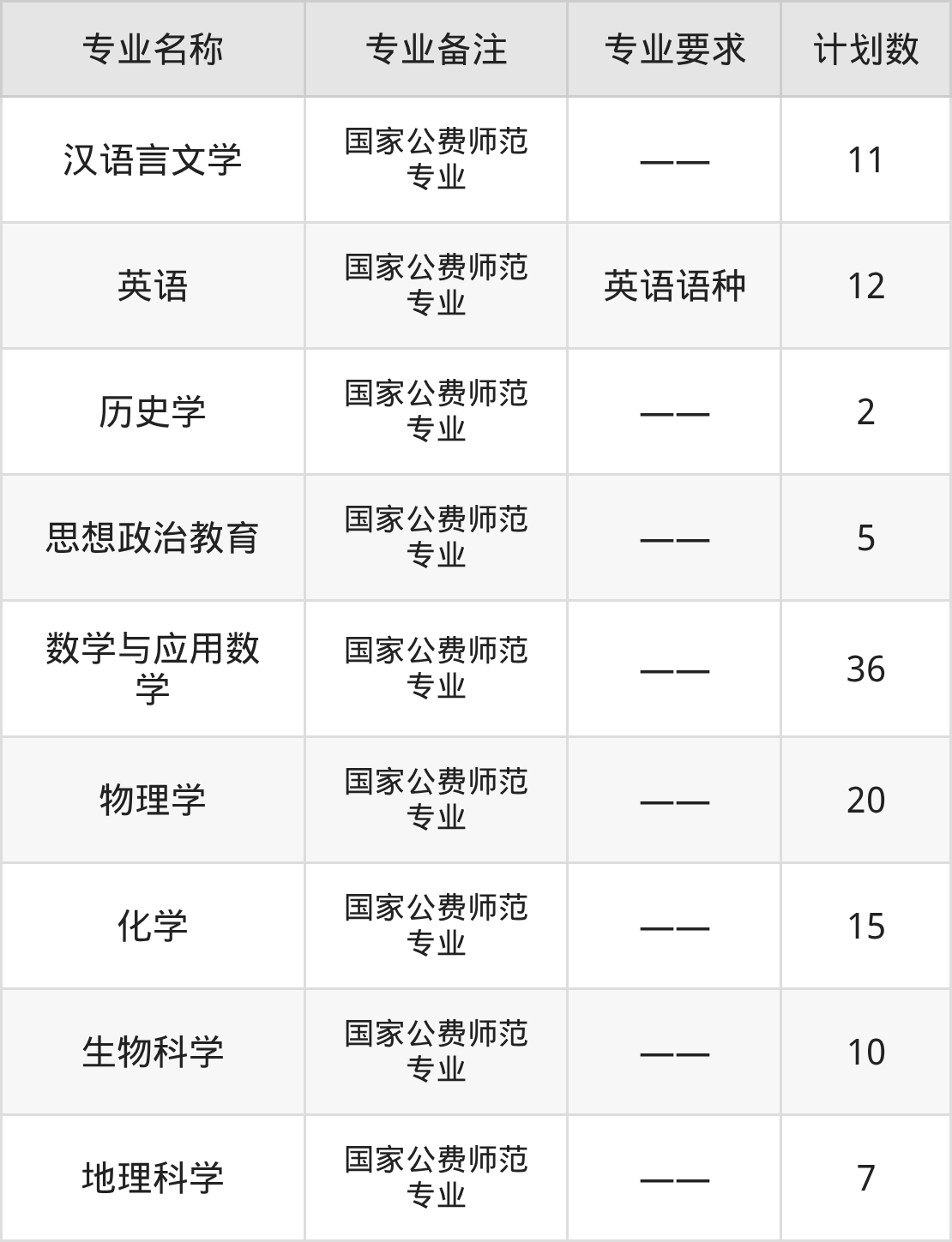 2025年华东师范大学在上海招生人数是118人,招生专业包括汉语言文学、英语、历史学、思想政治教育、数学与应用数学、物理学、化学、生物科学、地理科学。具体如下图所示: