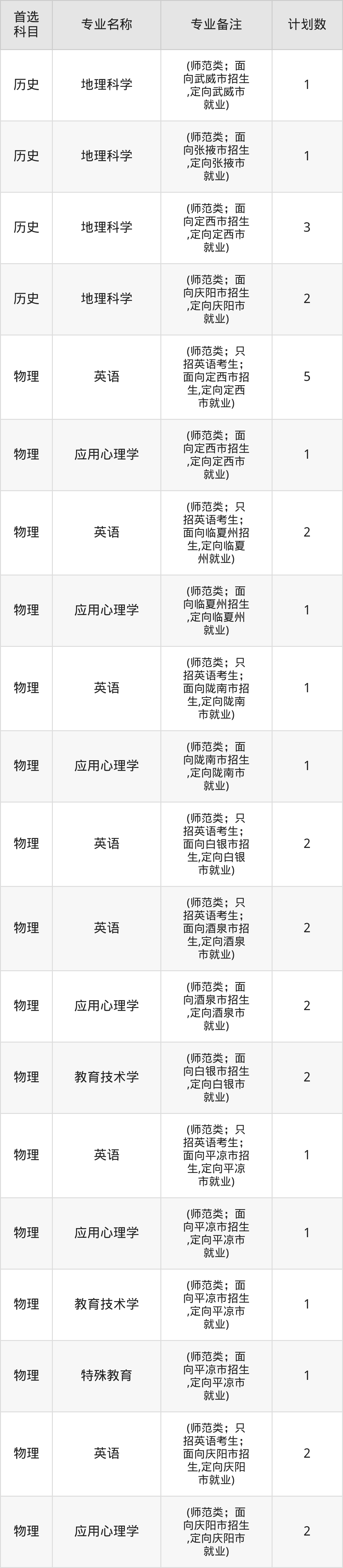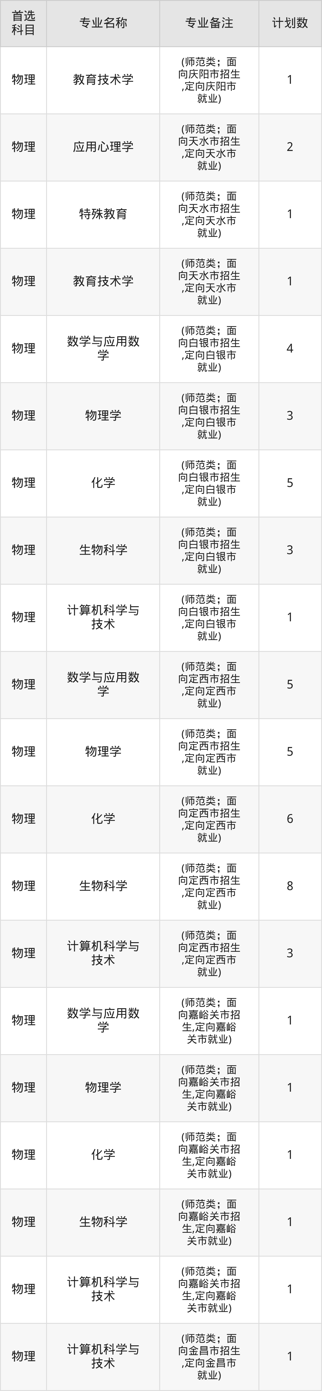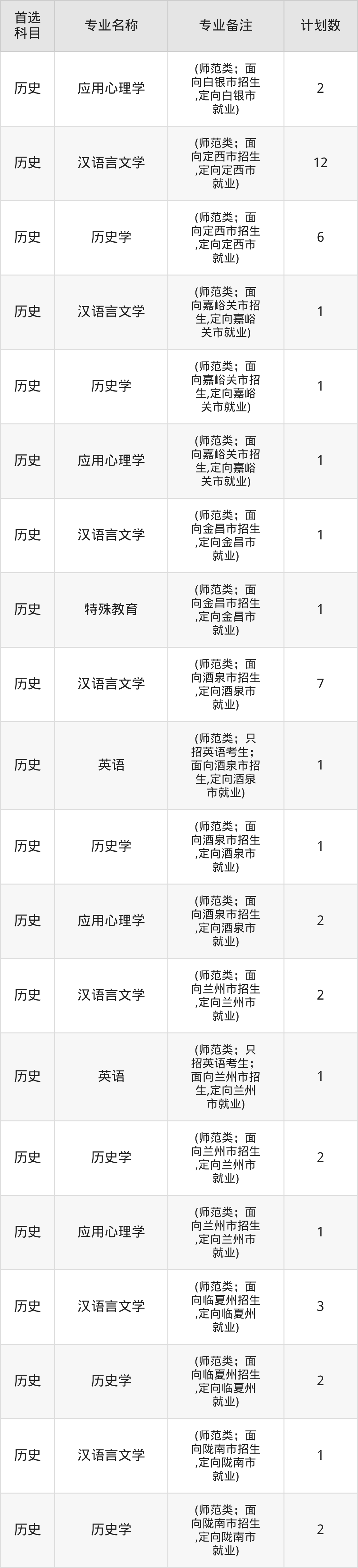 2025年一共有1所地方公费师范生在甘肃招生,是西北师范大学,招生计划总人数是334人。下面是各个学校招生计划以及录取分数线汇总,2026届高考生请查阅。