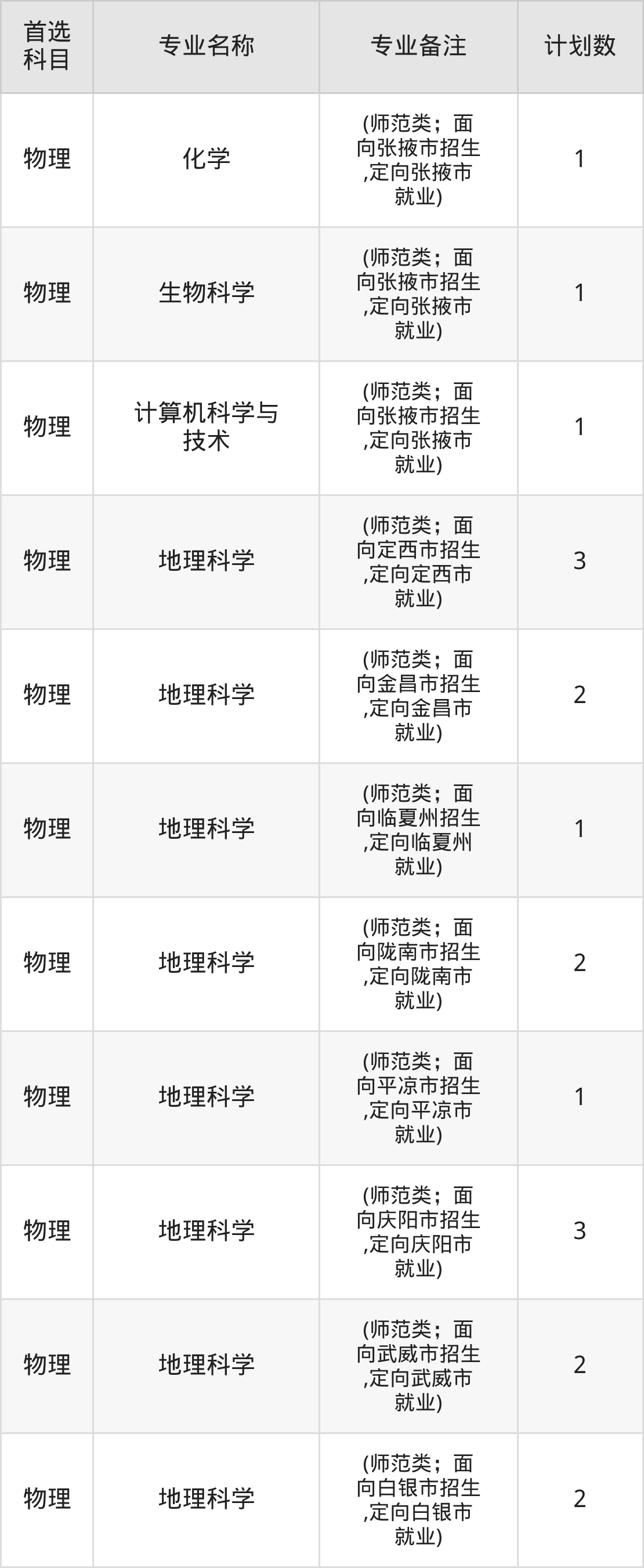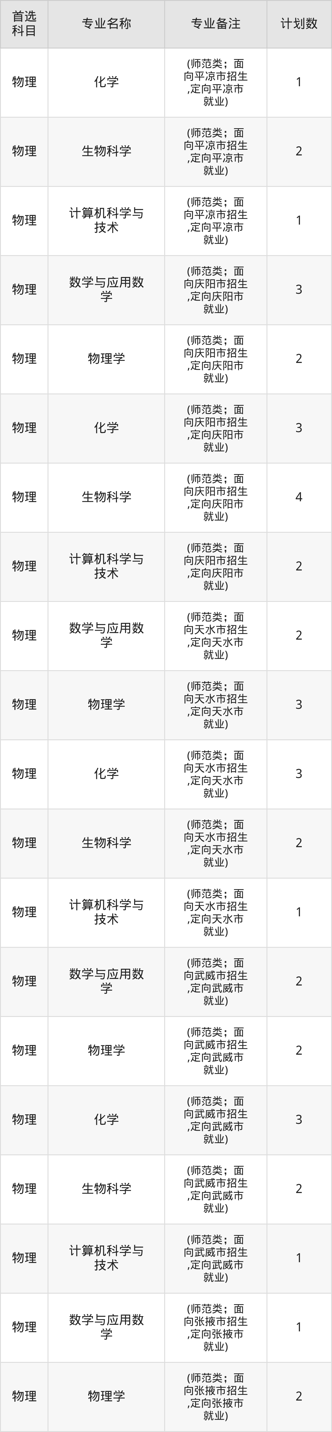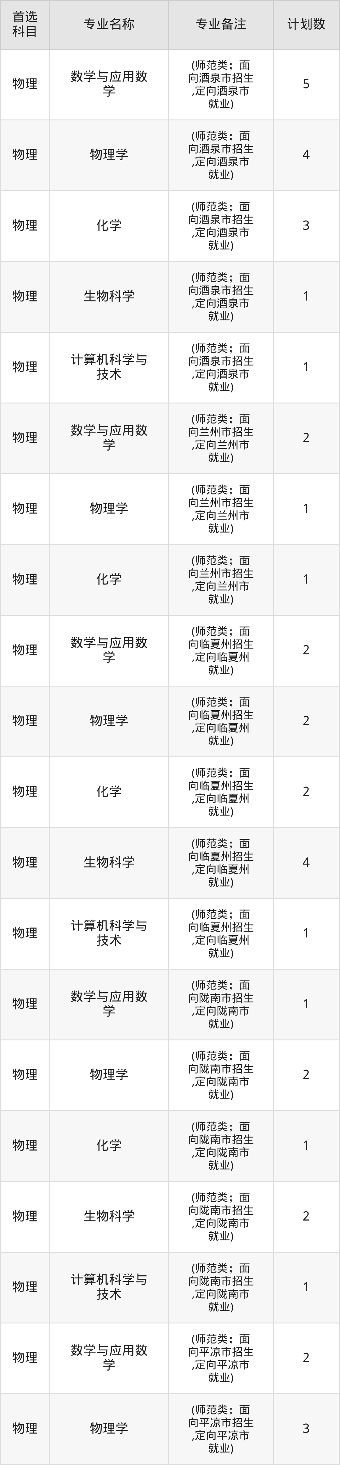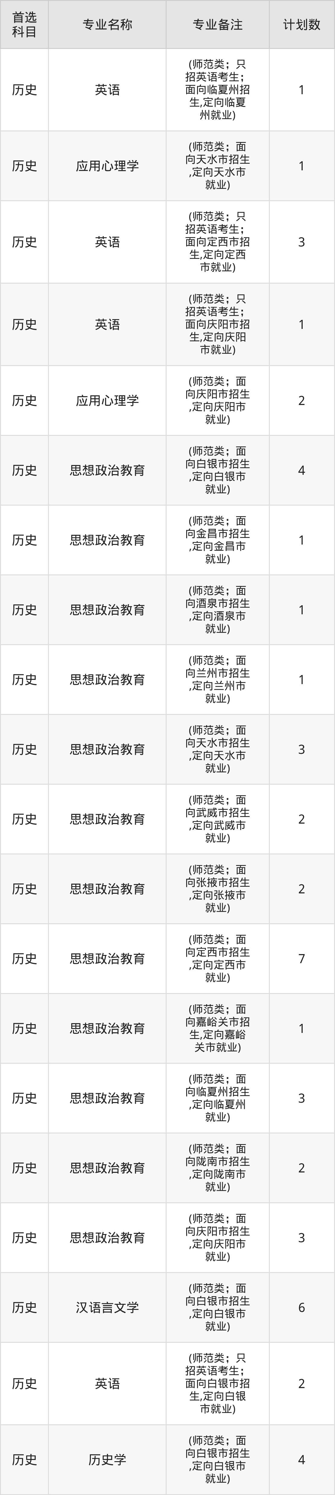 2025年一共有1所地方公费师范生在甘肃招生,是西北师范大学,招生计划总人数是334人。下面是各个学校招生计划以及录取分数线汇总,2026届高考生请查阅。
