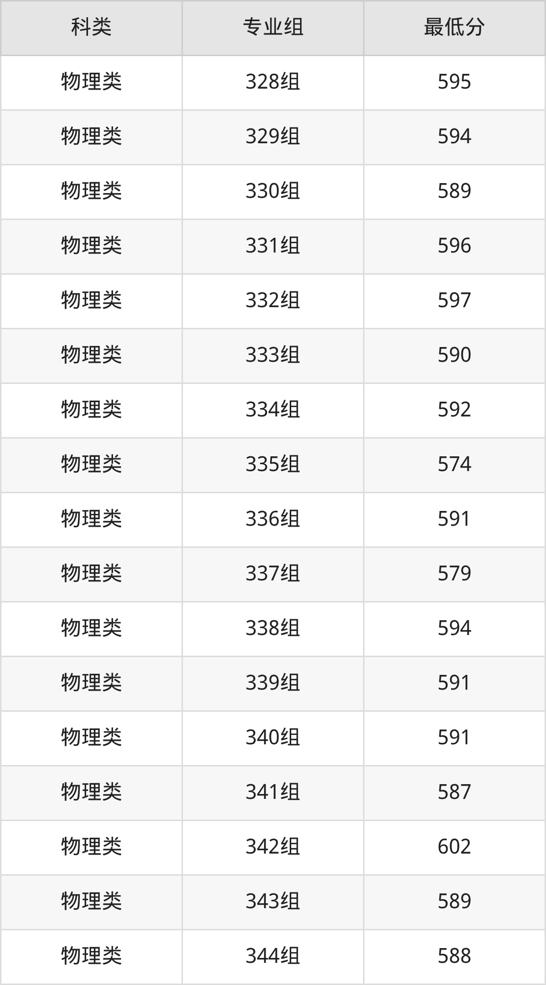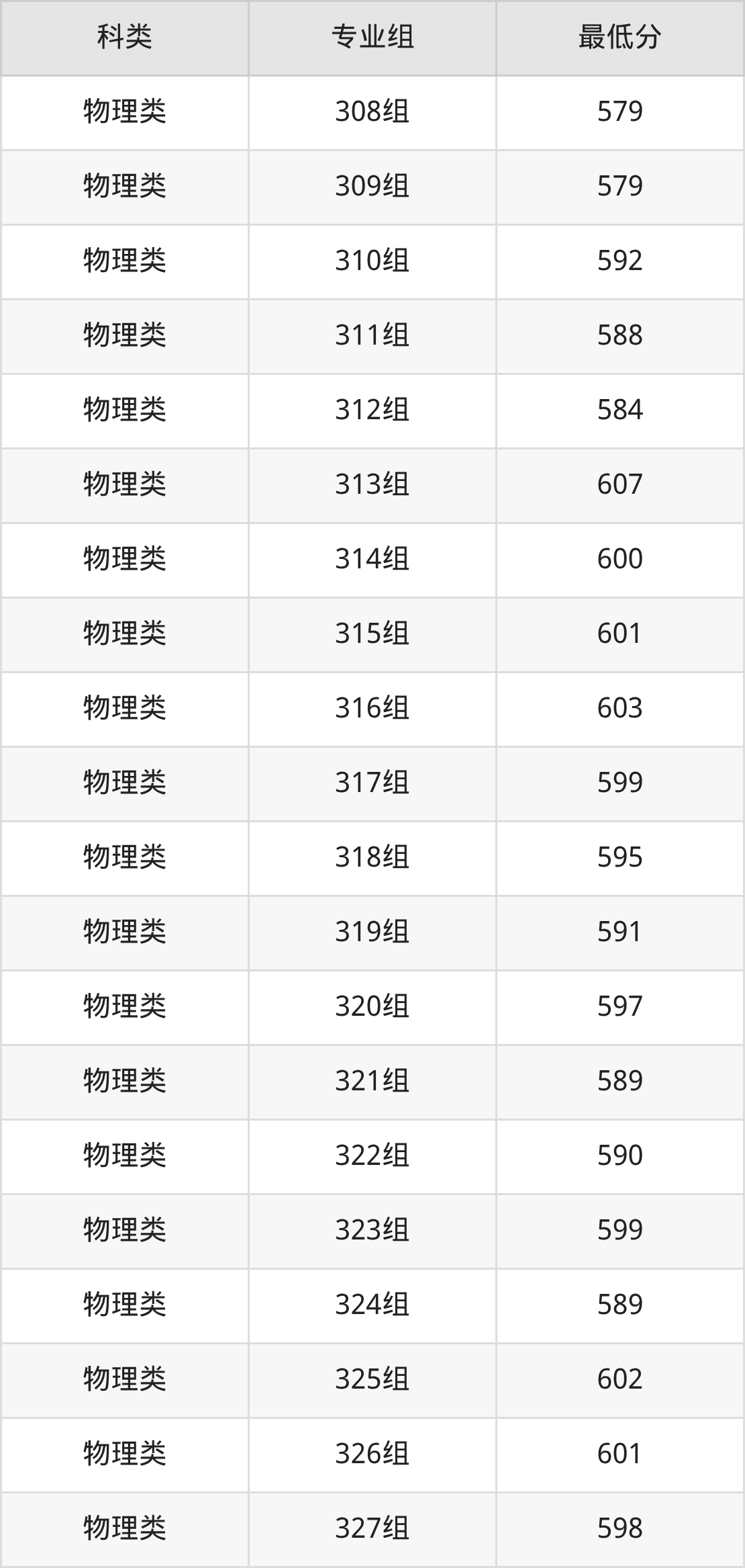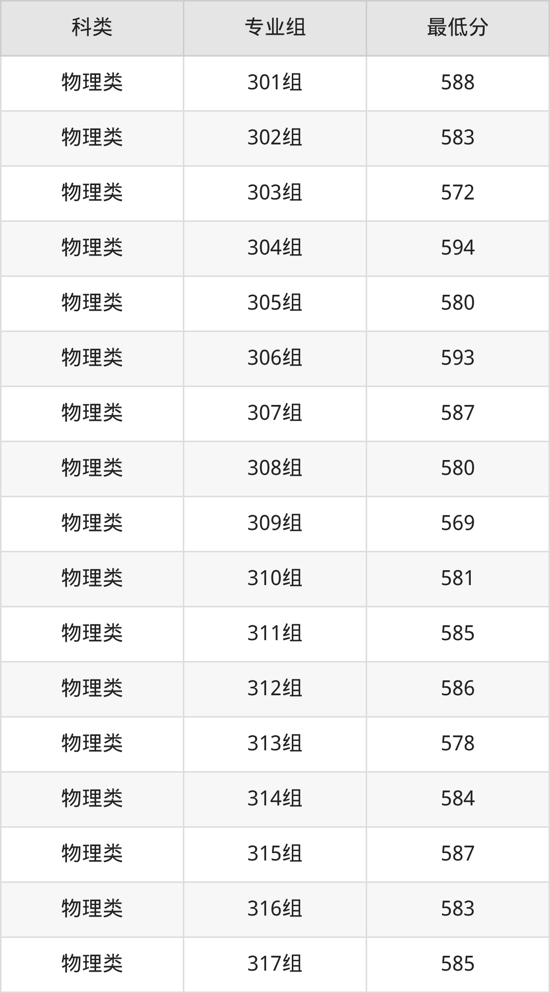 山西物理组考生最难考的是304组,2025年最低分594分,超学校该类最低分(569分)25分。最好考的则是309组,2025年最低分是569分。