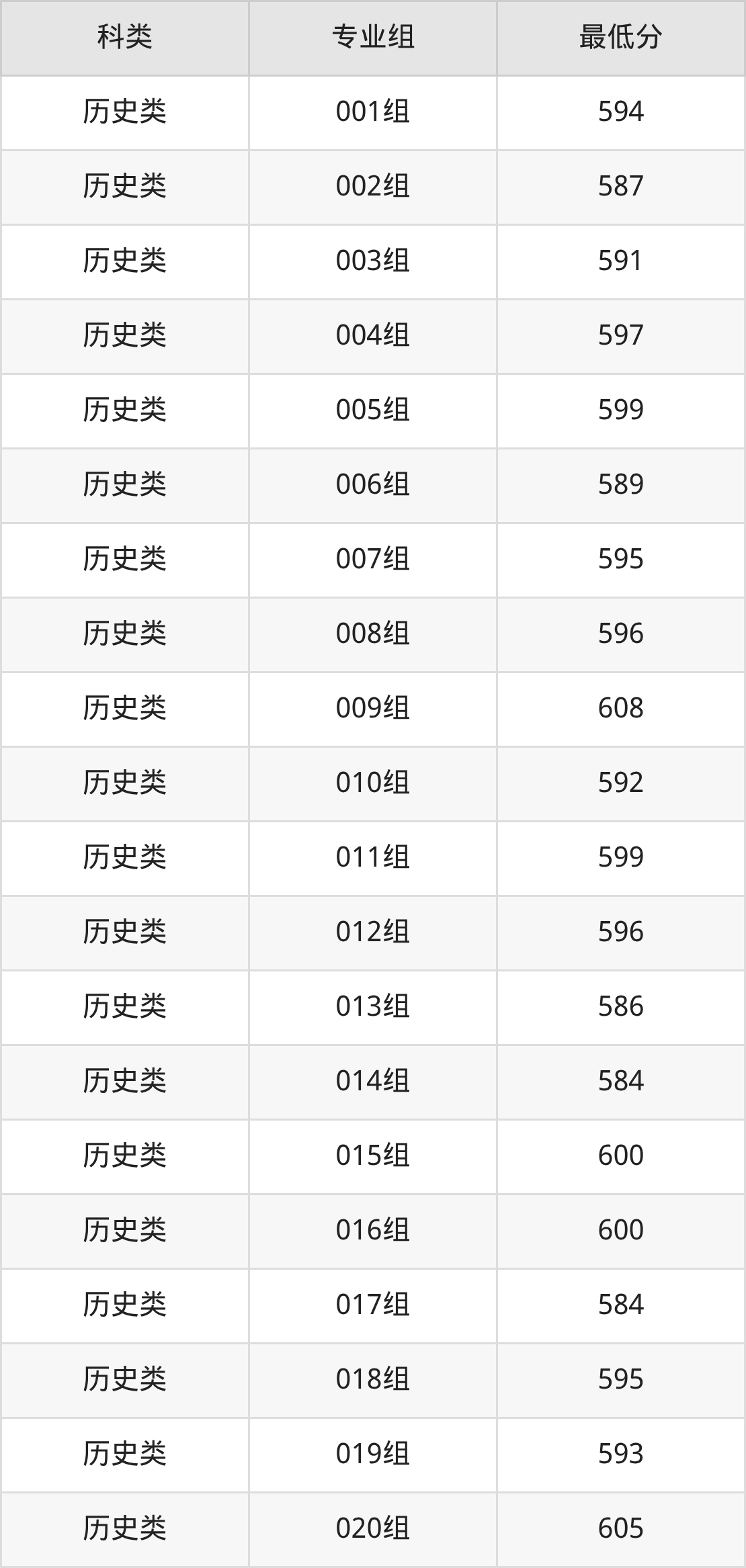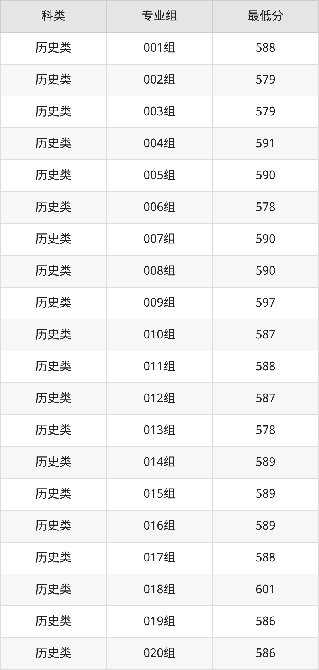 山西历史组考生最难考的是018组,2025年最低分601分,超学校该类最低分(578分)23分。最好考的则是006组,2025年最低分是578分。