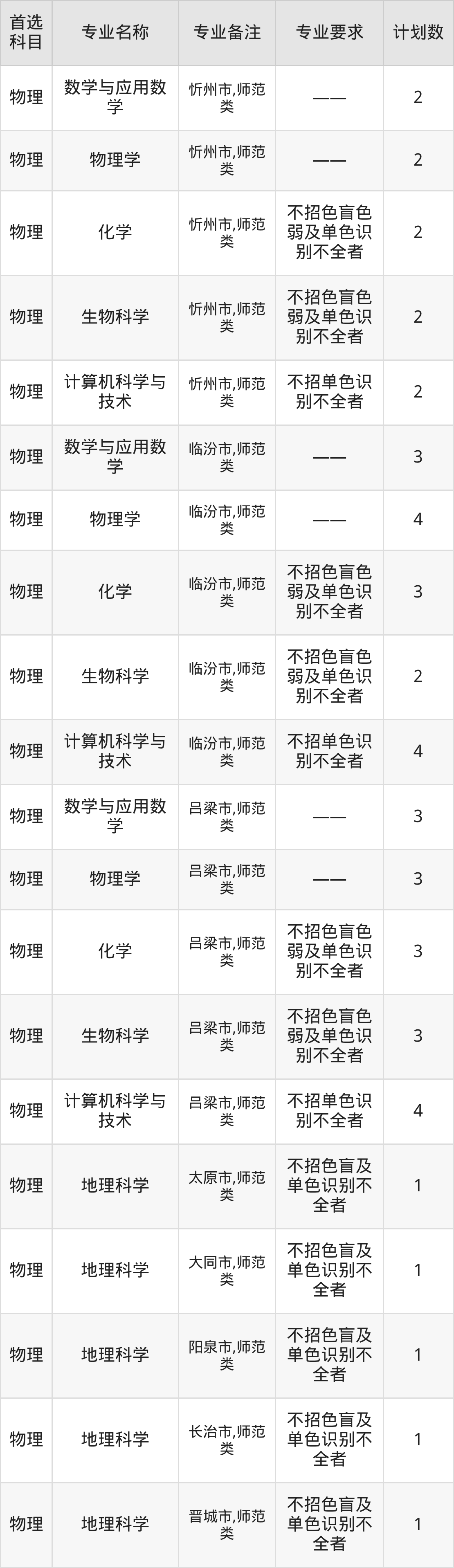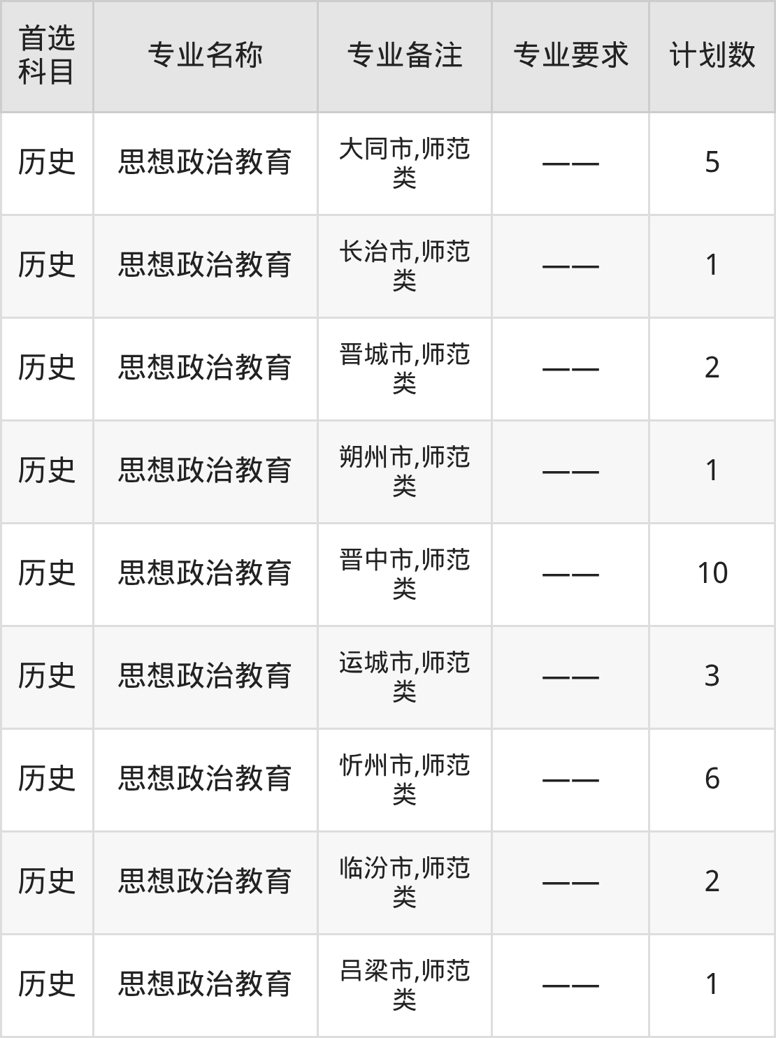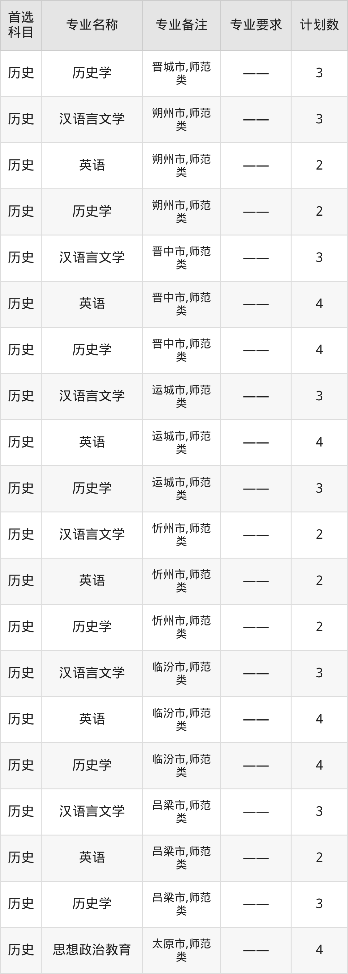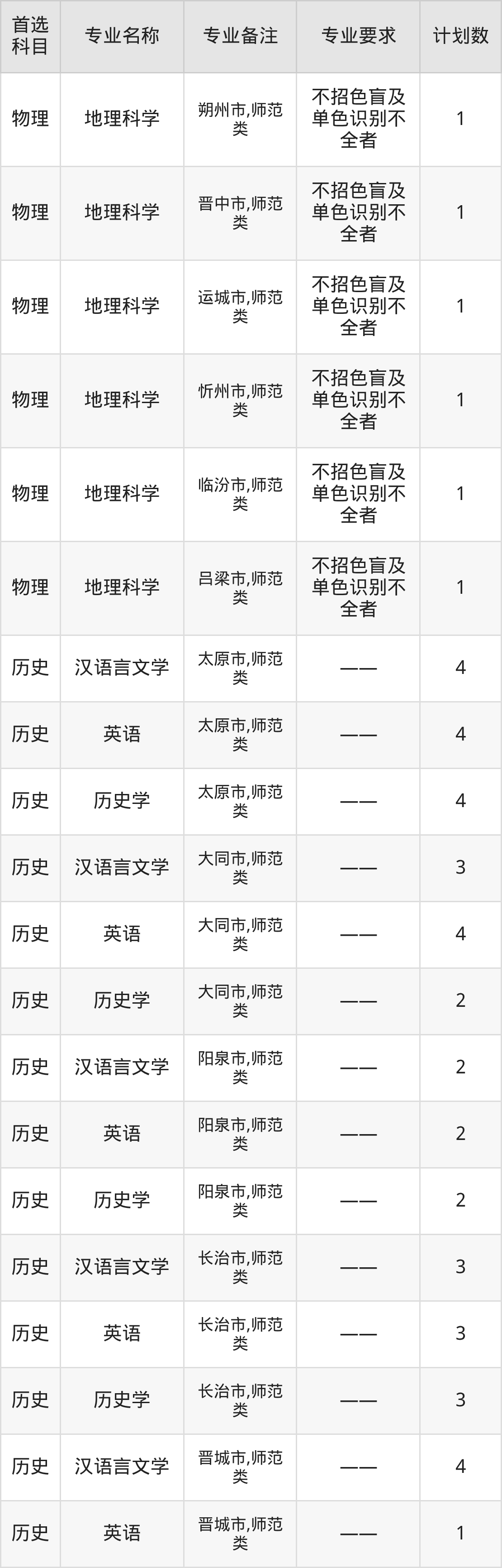 2025年一共有3所地方公费师范生在山西招生,分别是山西师范大学、太原师范学院和忻州师范学院,招生计划总人数是690人。下面是各个学校招生计划以及录取分数线汇总,2026届高考生请查阅。