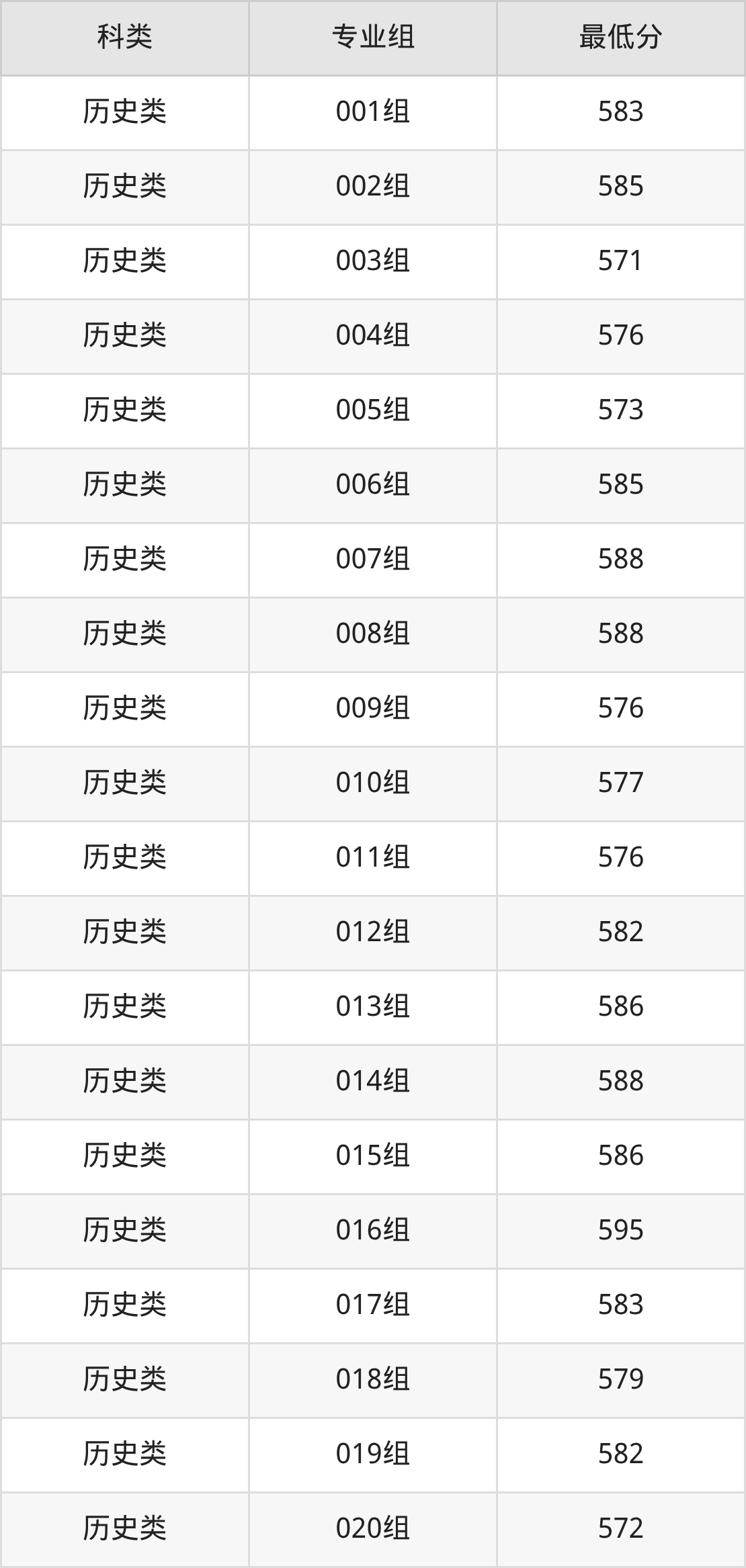 山西历史组考生最难考的是016组,2025年最低分595分,超学校该类最低分(571分)24分。最好考的则是003组,2025年最低分是571分。