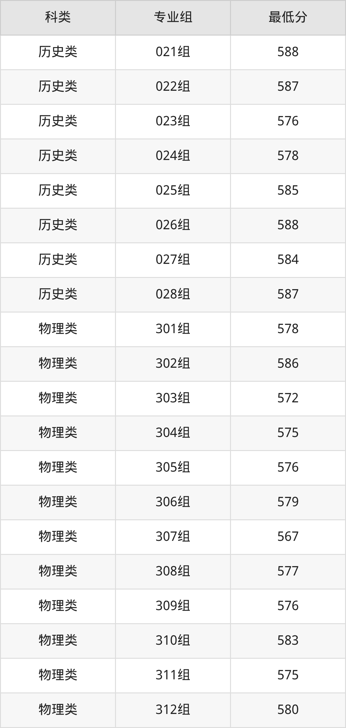 山西历史组考生最难考的是009组,2025年最低分608分,超学校该类最低分(581分)27分。最好考的则是028组,2025年最低分是581分。