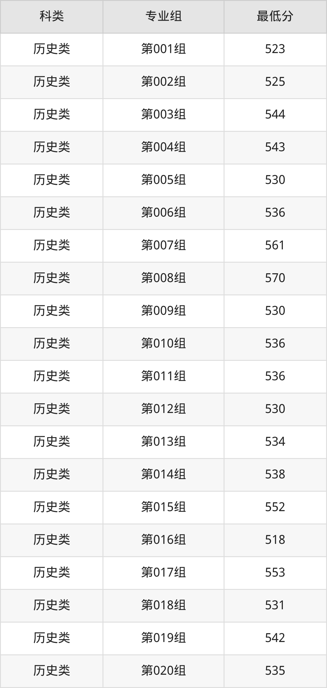 黑龙江历史组考生最难考的是第007组,2025年最低分552分,超学校该类最低分(521分)31分。最好考的则是第006组,2025年最低分是521分。