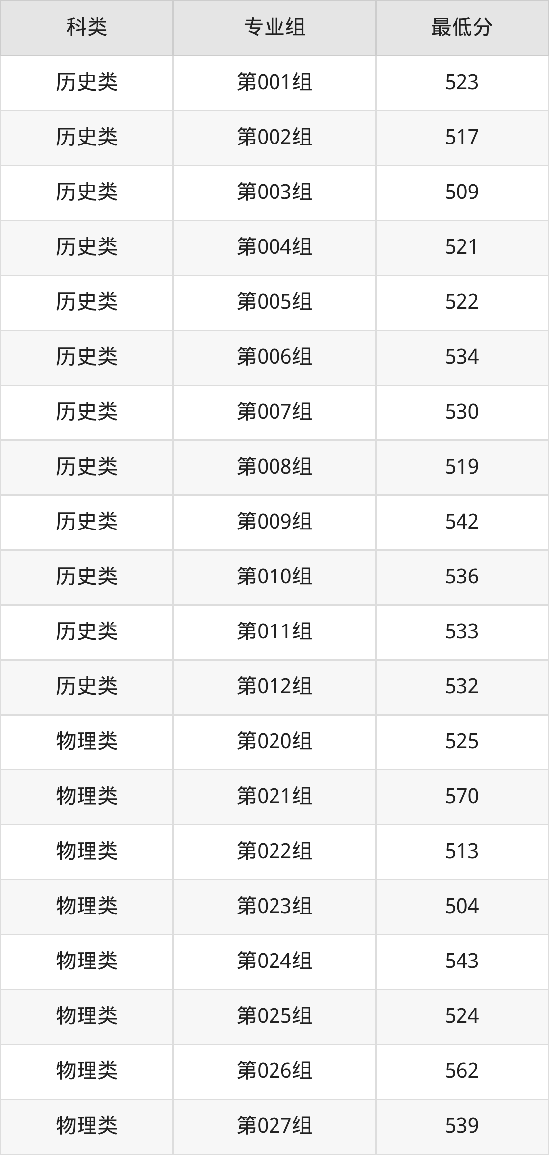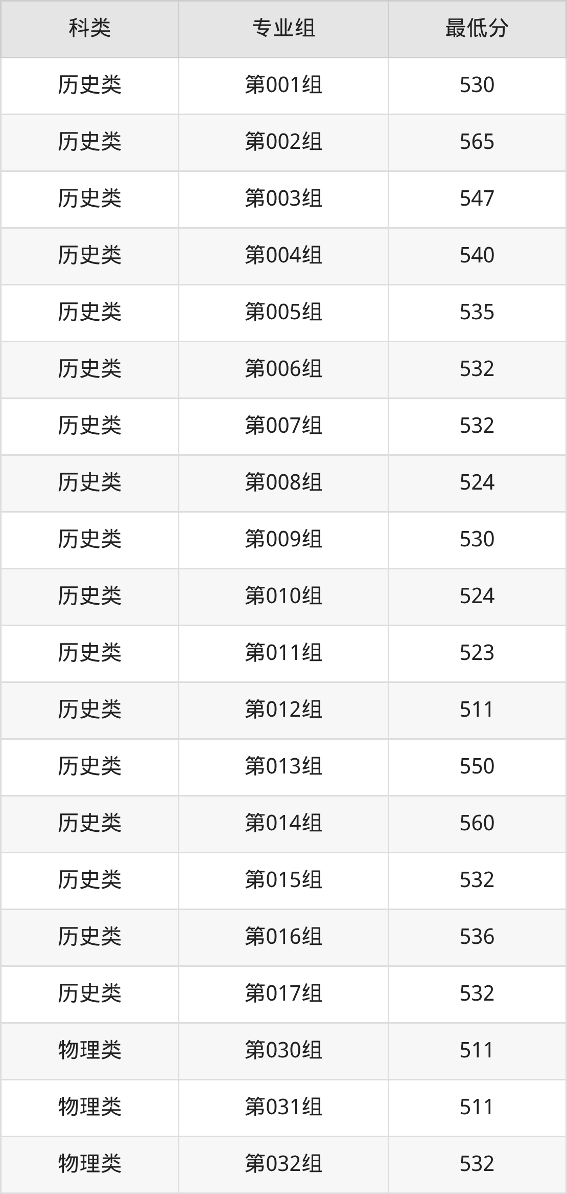 黑龙江历史组考生最难考的是第001组,2025年最低分512分,超学校该类最低分(505分)7分。最好考的则是第003组,2025年最低分是505分。