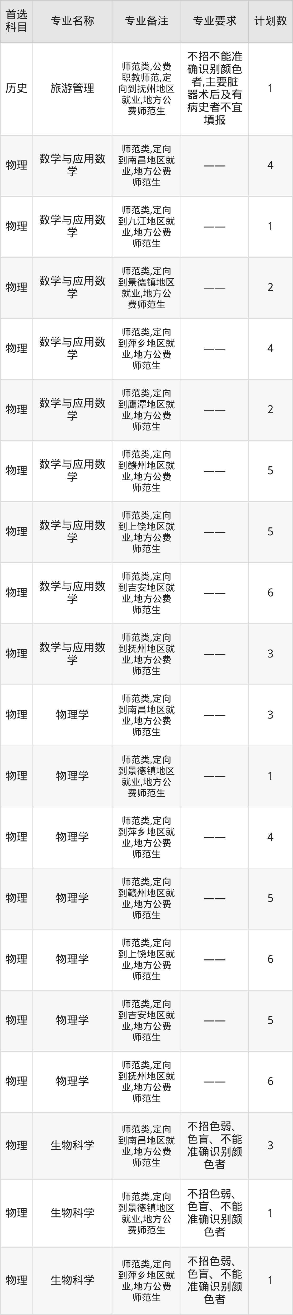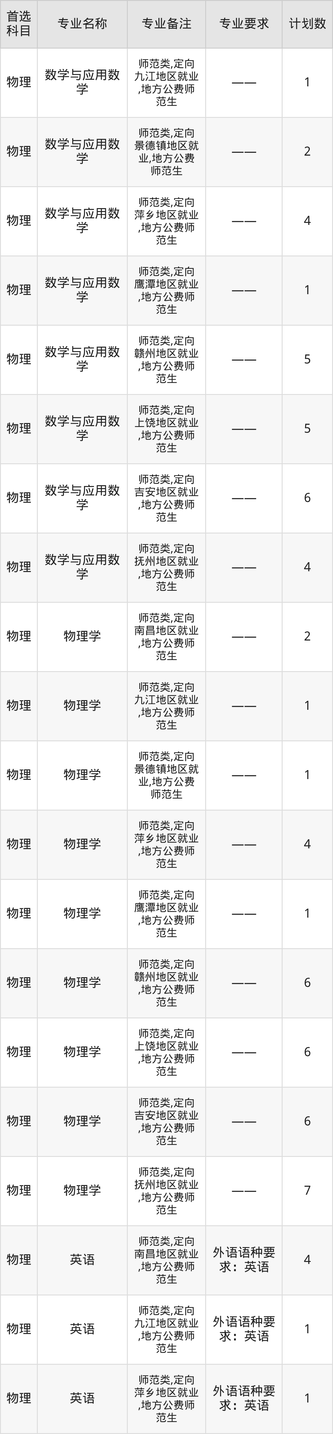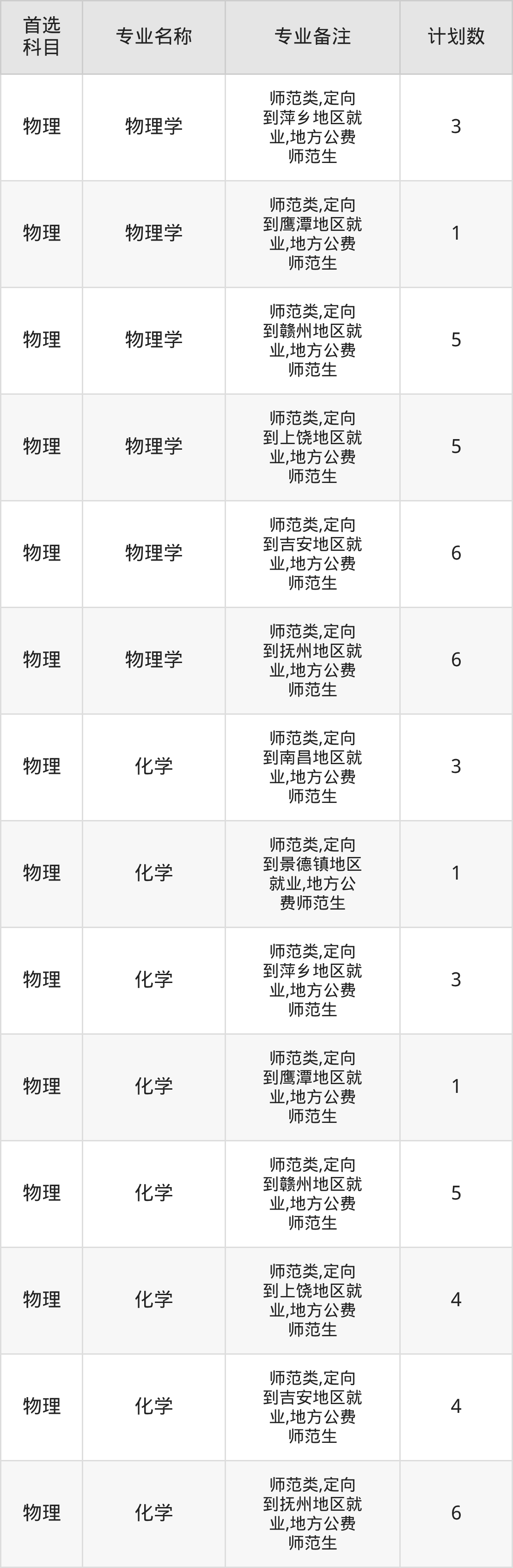 2025年赣南师范大学在江西招生人数是109人,招生专业包括汉语言文学、数学与应用数学、物理学、化学。具体如下图所示: