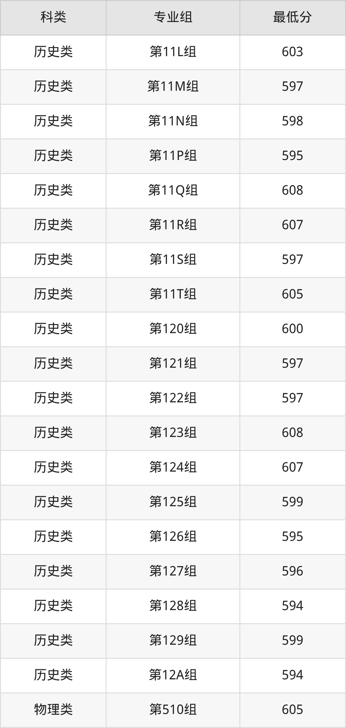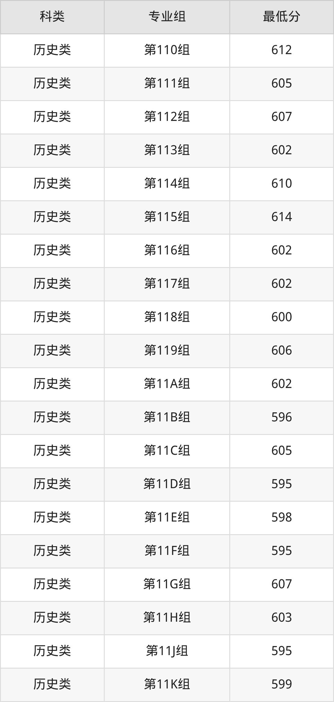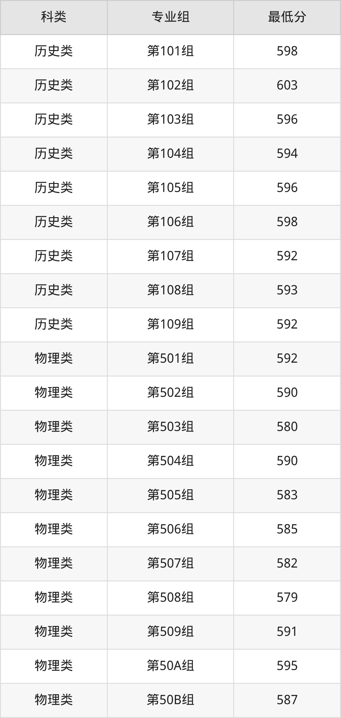 江西历史组考生最难考的是第102组,2025年最低分603分,超学校该类最低分(592分)11分。最好考的则是第107组,2025年最低分是592分。