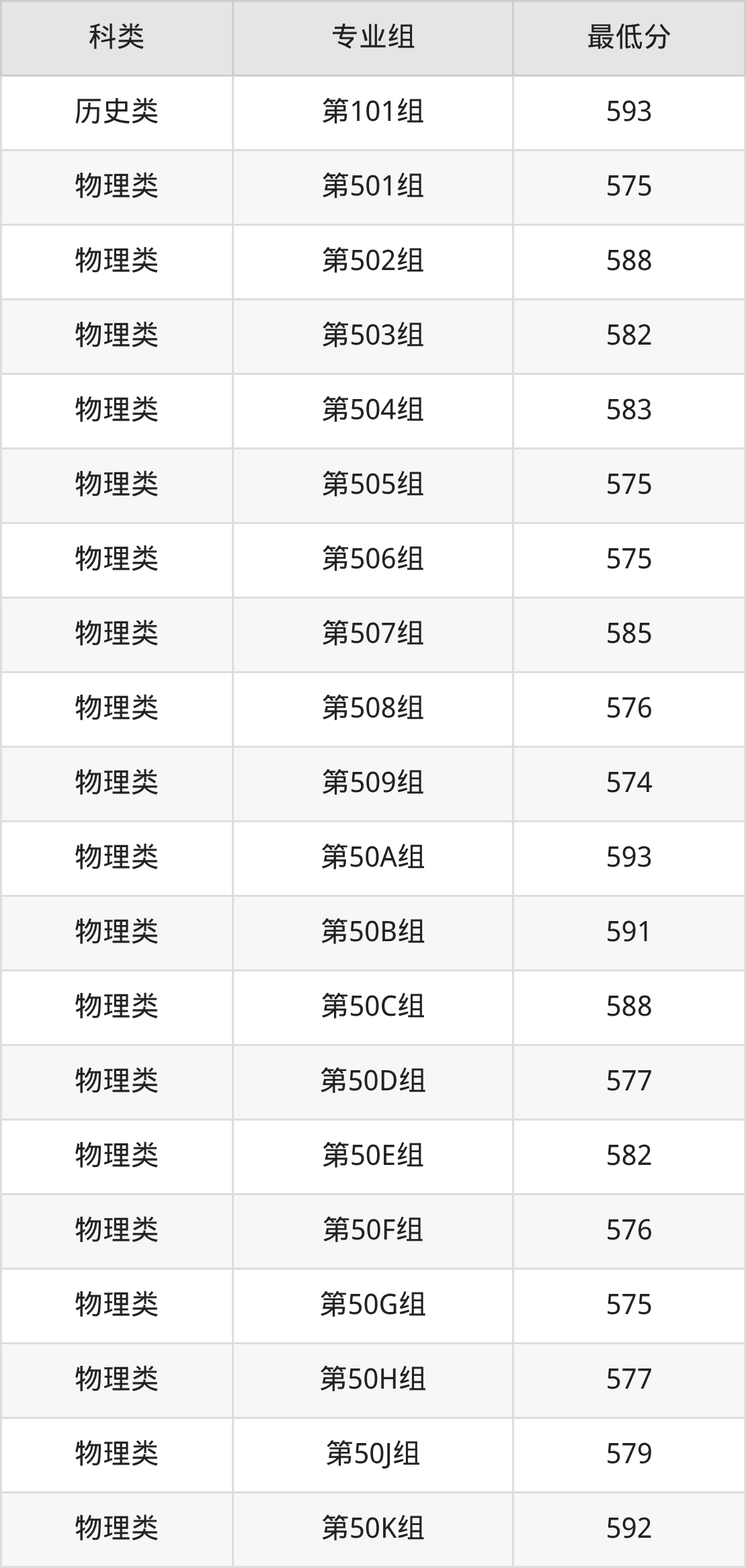 江西物理组考生最难考的是第50A组,2025年最低分593分,超学校该类最低分(573分)20分。最好考的则是第50P组,2025年最低分是573分。