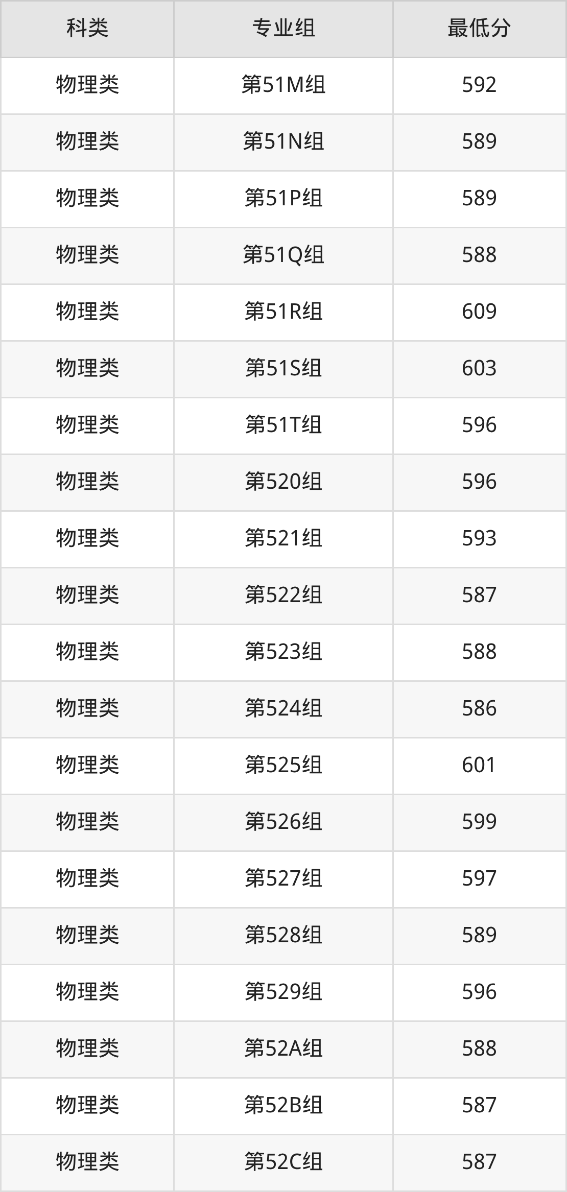 江西物理组考生最难考的是第51R组,2025年最低分609分,超学校该类最低分(578分)31分。最好考的则是第52J组,2025年最低分是578分。