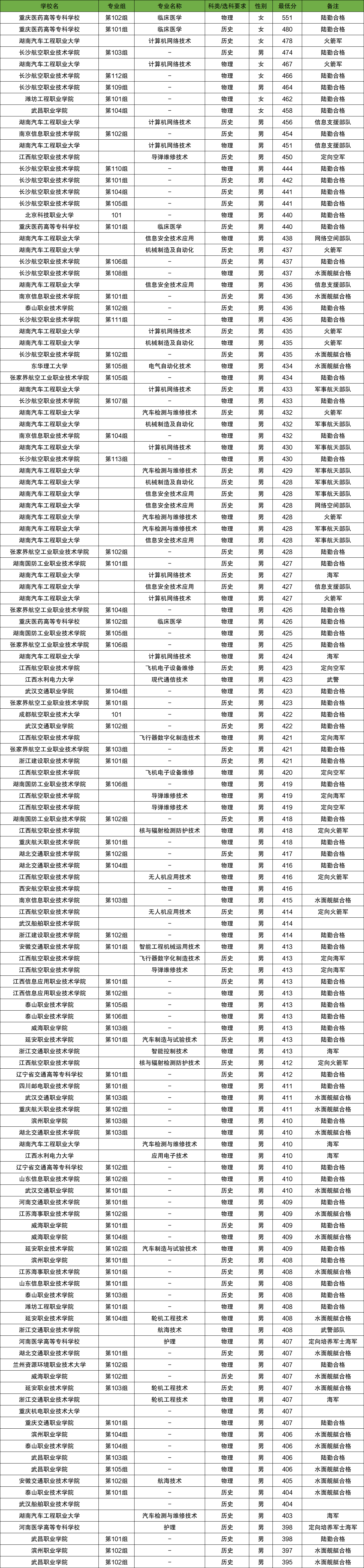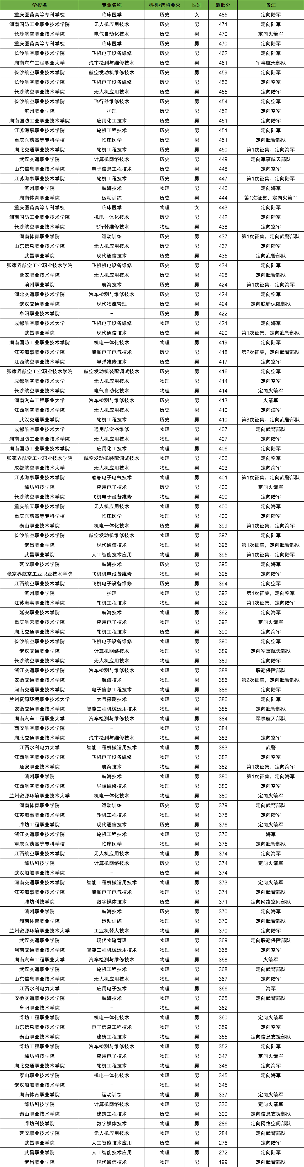 定向士官学校在湖南录取分数线一览表(男生、女生汇总)如下: