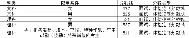 其中,理科男生报考潜艇、潜水、空降、特种作战、空中战勤(技勤)特殊岗位的考生,分数线为511分。