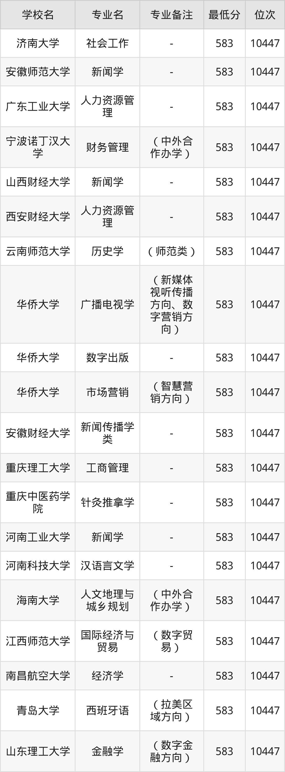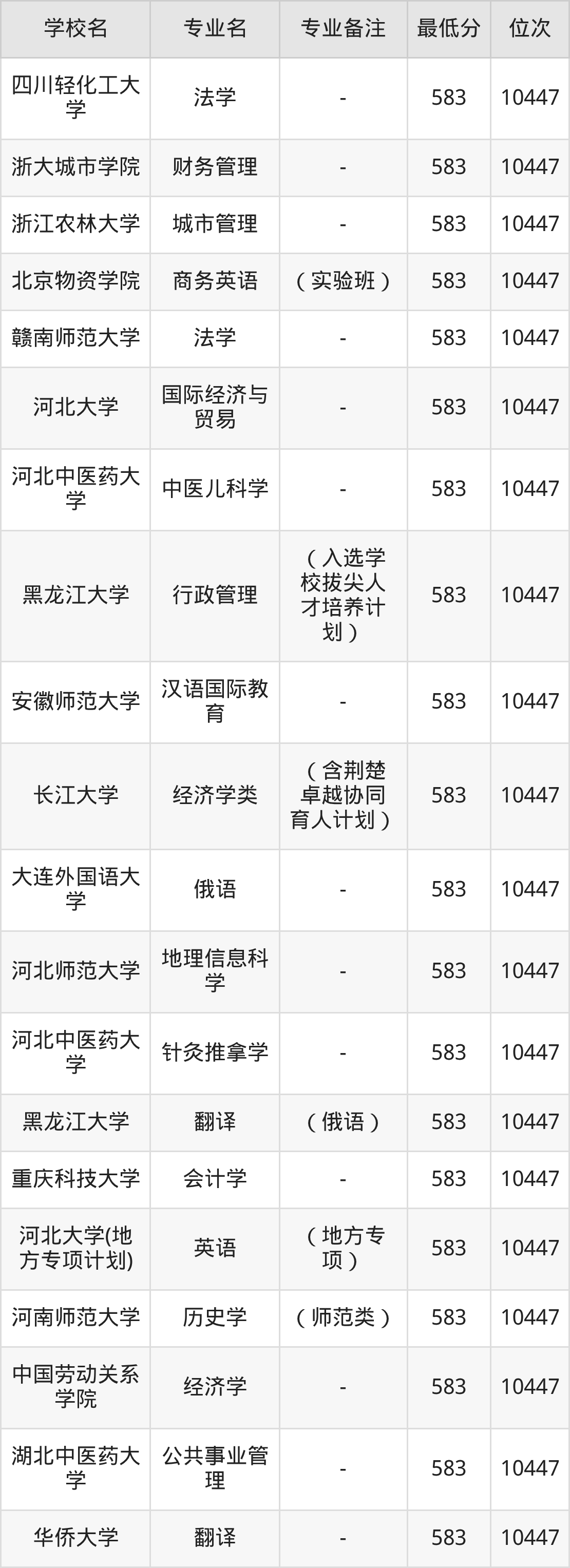 为让同学们可以有很多可选择的院校,除上述已经列举的名单外,下面还展示了2025年河北历政地583分左右(582分-584分)的部分大学名单一览表,供参考,注意学校不同分数对应专业有差异:
