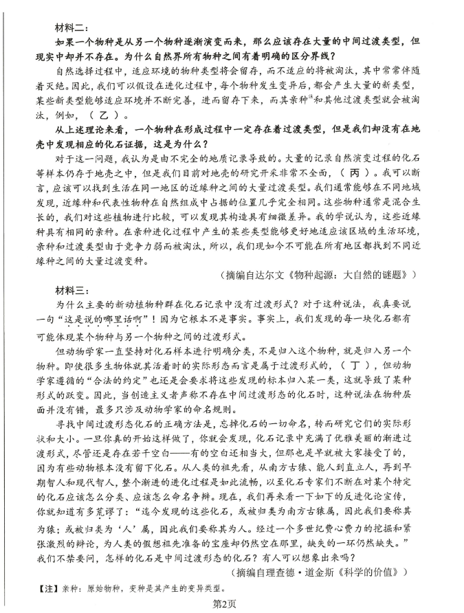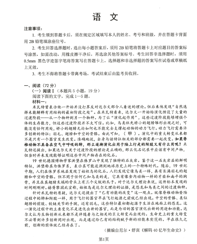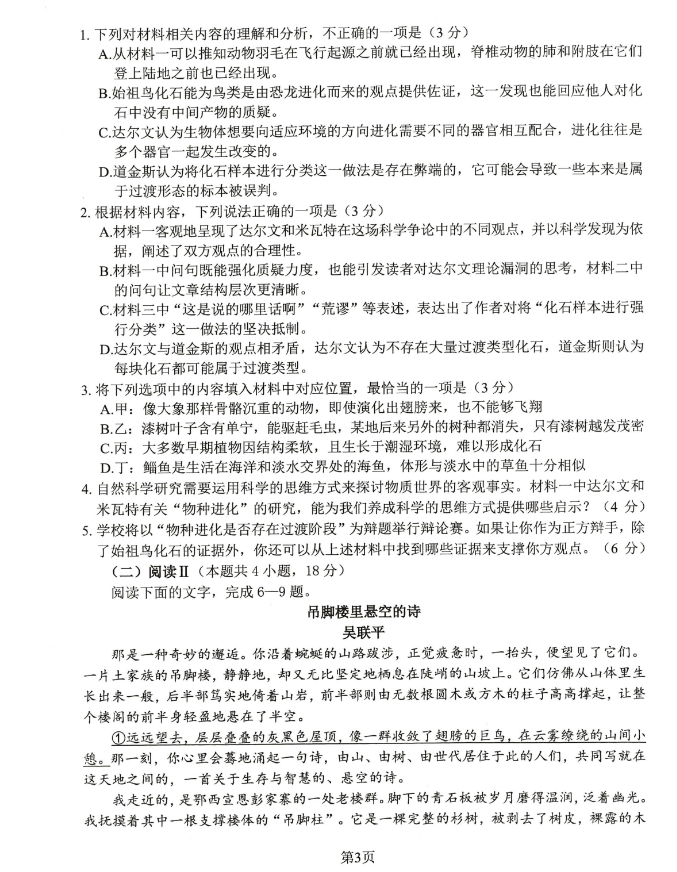 语文试卷及答案已经出炉: